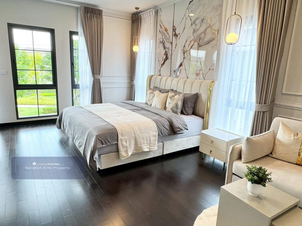 Single house for rent, luxuriously decorated, The City Bangna 2, most beautiful plot, new house, never lived in Brand new house. The most beautiful in the project Shady garden view from the master room and Working area Smart Home controls lights, air conditioners and electrical equipment via mobile phone ✅ Details :: - Land : 111.6 sq.w - Living area : 500 sq.m - Bedroom : 4 - Bathroom : 5 - Living room : 2 - Kitchen : 1 - Maids room : 1 - Parking : 4 Function Luxurious.. Double Volume living room Thai kitchen Western kitchen Maids room with private bathroom Air conditioning in the whole house / complete curtains / CCTV / remote control gate / anti-theft system Facilities :: - Swimming pool, fitness - Club House - Public park - 24 hour security system Nearby places :: Mega Bangna ICS ,Bangkok Patana International School Suvarnabhumi Airport ------------------------------- RENT : 340,000 THB ------------------------------- For more information, please contact Mr. Big Call : Contact number Line : big Contact number Bangkok Elite Property Happy to provide services for buying, selling, renting. Home, real estate , giving advice on bank loans