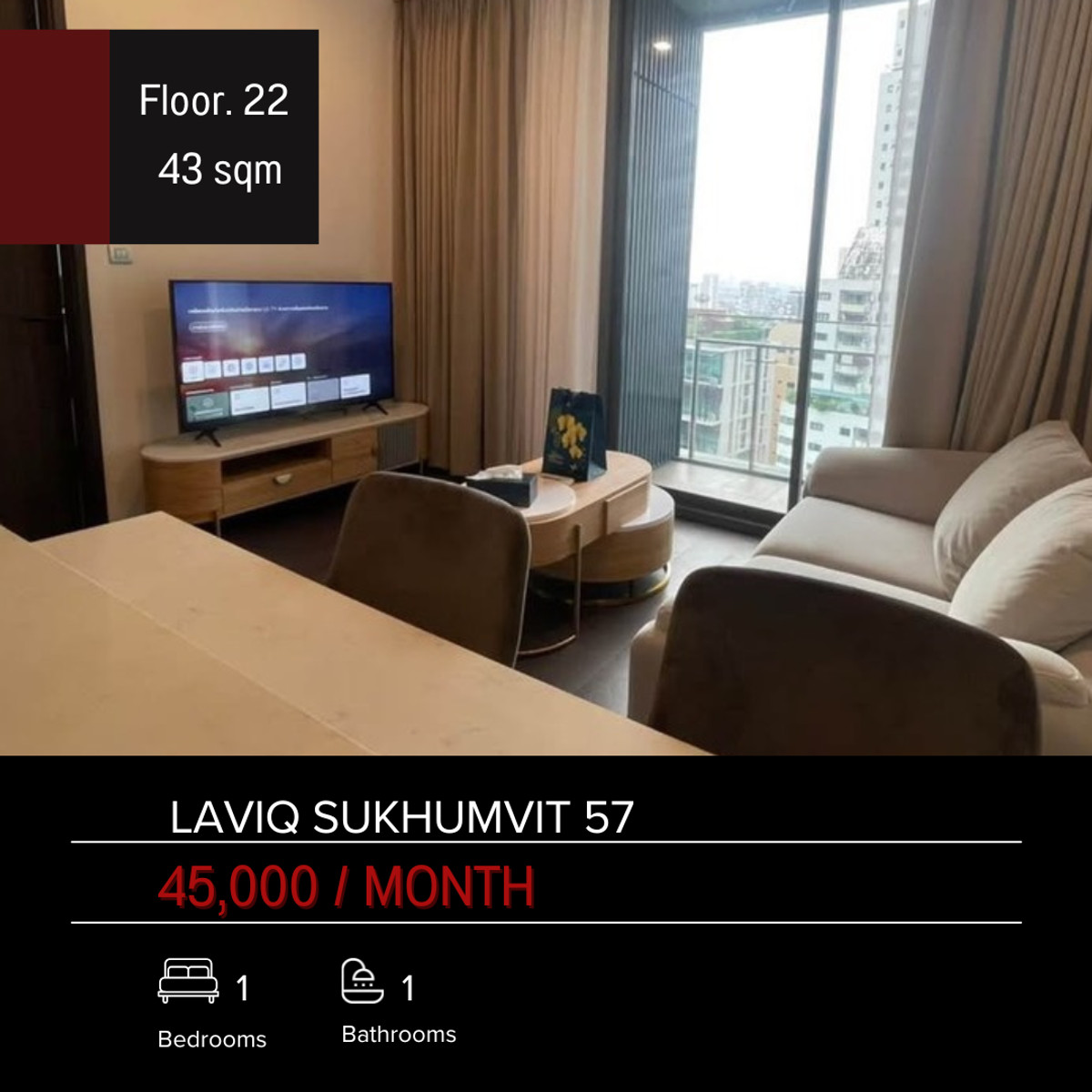 For Rent Ready to move Condo : LAVIQ sukhumvit 57 Size : 43 SQM Floor. 22 Type: 1 bedroom 1 bathroom Rent Price : 45,000 Baht Tel. Contact number ( Anda ) WhatsApp Contact number (Anda) Line @285gshuc WhatsApp Contact number (Anda) #LS5722