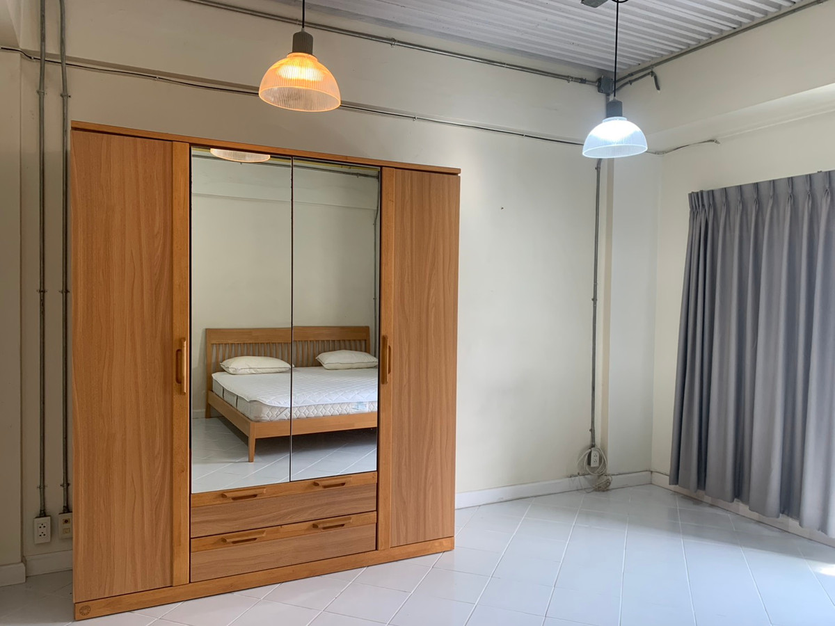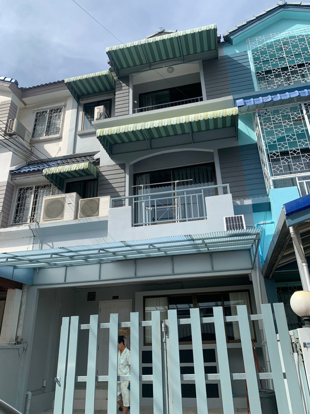 3-story townhome for rent, Baan Klang Muang Rama 9 project, fully air conditioned, 3 bedrooms, 3 bathrooms, 1 living room, 1 kitchen, rent 25,000 baht / month.