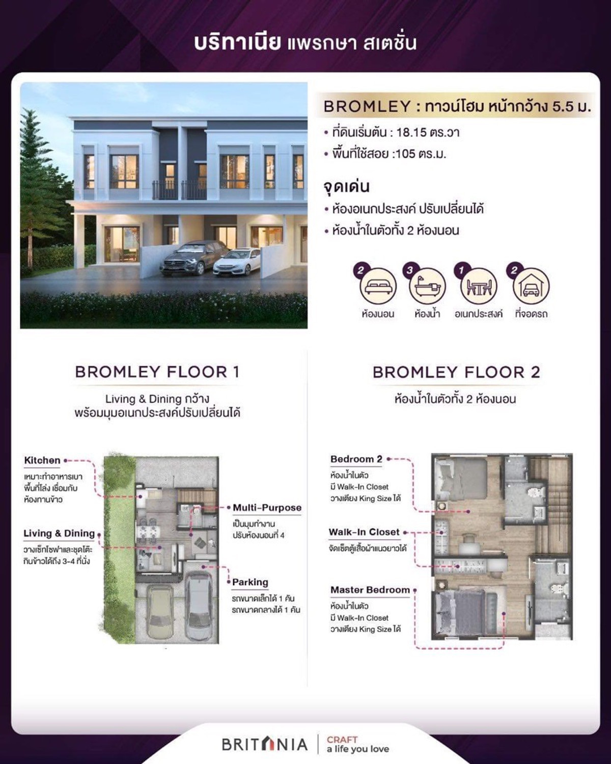 Large land of 34.9 sq m, perfect usable space. Live comfortably for the whole family 📍 Britannia Praeksa Station Project next to the main road Praeksa/opposite Phet Aree Market ✨ Complete functions • 3 bedrooms • 3 bathrooms • 2 parking spaces • Edge plot is more private, airy, open, good breeze • The road in front of the plot is not crowded. Suitable for families who want peace 📣 Only the last one! Who is looking for a house with all functions? Private location like this Dont miss it 🔥 Full promotion of free gifts + free transfer day expenses* 💰 Light installments, only 14,xxx baht per month* . *Terms and conditions as specified by the company 📲 If interested in making an appointment to view the house, call Contact number 💚Line ID : Whan-38 🏡 Real house ready for viewing every day/