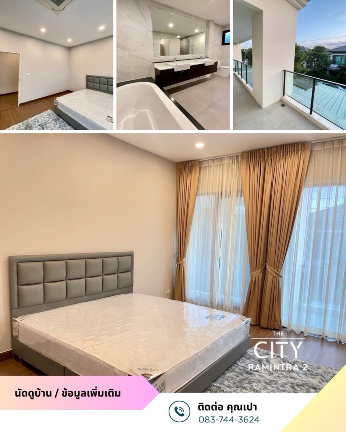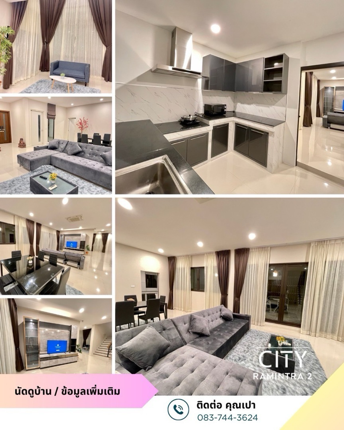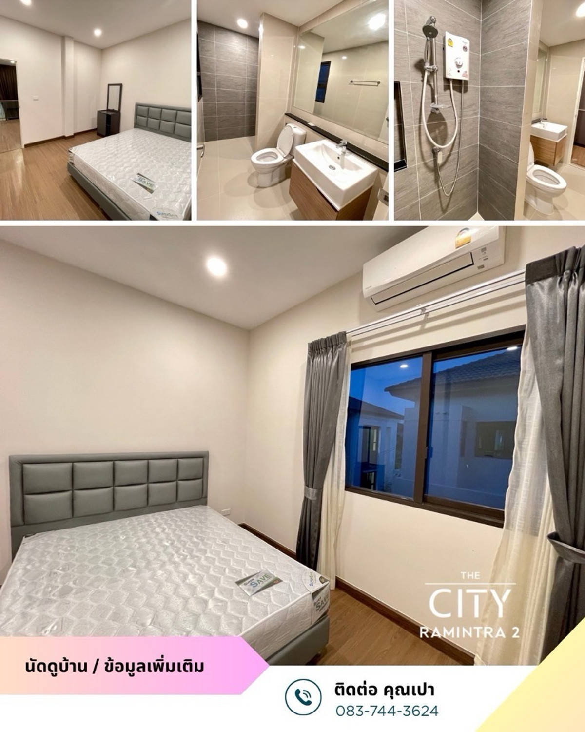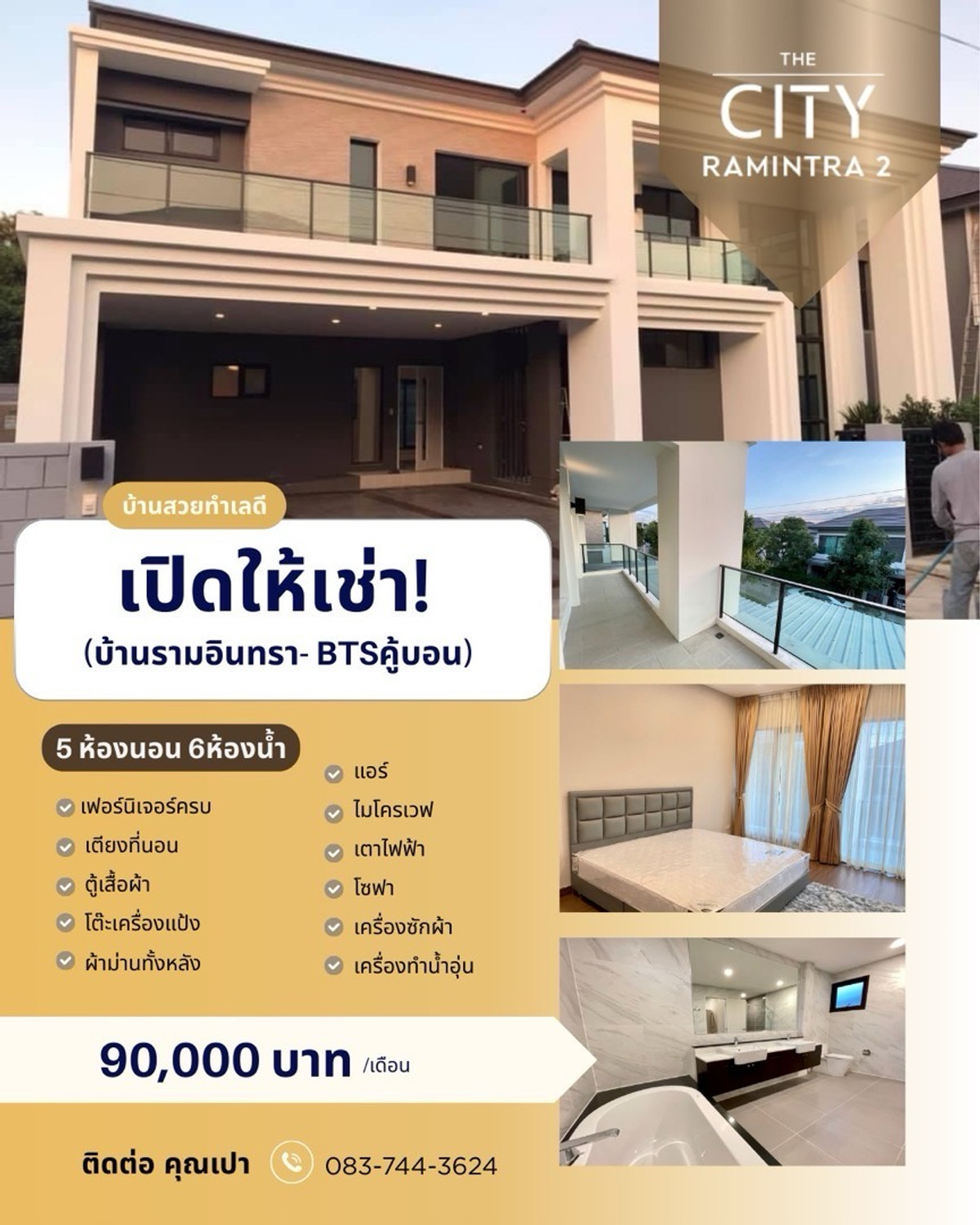📍The city Ramintra 2, Chatuchot Road, Or Ngoen Subdistrict, Sai Mai District, Bangkok Usable area 380 square meters 📌 2-story detached house, 5 bedrooms, 6 bathrooms, 1 living room, 1 living room, 1 dining room, 1 kitchen, 1 maids room + bathroom color Parking for 3 cars in the house Adding a roof to both the front and back of the house 📌Fully furnished - Bed, mattress - Wardrobe - Dressing table - Curtains throughout the house - Air conditioner - Dining table - Microwave - Electric stove - Sofa - TV display cabinet - Washing machine - Water tank - Water pump - Water heater 🏠Rental fee: 90,000 Nearby places -Shopping centers: Big C Sukhapiban 3, The Promenade, Fashion Island, Amorini Lifestyle Mall, Central Festival Eastville, Sai Mai Tesco Lotus Watcharapol -Hospitals : Synphaet Hospital, Sai Mai Hospital, Phayathai Hospital Nawamin -Market: Or Ngoen Market, Sai Net Market, Phra Phrom Khlong Intersection Market, Liap Duan Market - Educational Institutions: Sarasas Witaed Sai Mai School, Lertlah School Kaset-Nawamin Road, Satit Phatthana School, Nawaminthrachinuthit School Benjamarachalai, Rattanakosin Somphot School Bang Khen - Big Luang Pu Thuat Temple Wat Phraya Suren
