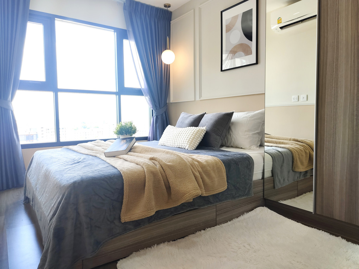 Condo for rent, The Origin Phahon-Saphan Mai, The Origin Phahon-Saphan Mai, corner room, swimming pool view, near the elevator, newly decorated, beautiful, near BTS Sai Yut ===== Rental price 13,000/month (1 year rental contract) ===== Condo The Origin Phahon-Saphan Mai, complete furniture and electrical appliances!! - 12th floor Awesome view of the pool - Room width 31 sq m., divided into areas - 1 bedroom, 1 bathroom - Bed with 5 foot mattress and bedding set - Shelf, sofa, shoe cabinet - 2 air conditioners, very cool, with water heater - Refrigerator, microwave, electric stove - 2 layers of curtains, 100% UV protection. Completely dark with gauze - full amenities. Wide swimming pool with green space, 24-hour security guard, free parking Security in the condo - Automatic door lock/key card scan - CCTV around the building, 24-hour security guard - Key card to lock the floor. High security Nearby places - Ying Charoen Market - Big C Supercenter - Lotus Laksi (Bang Khen) - CGH Hospital - Don Mueang Airport - BTS Sai Yud - Phranakhon Rajabhat University - Krirk University - Wat Phra Si Mahathat Woramahawihan Bang Khen +-+-+-+-+-+-+-+-+-+-+ If interested contact / Contact Tel : Contact number Rapeethut Rhapeethut (Tath) Line ID : Contact number # #The Origin #Saphanmai #Saphanmai Condo #Condo #Renovation Room #Condo next to the main road #Condo near the BTS #Condo next to the expressway