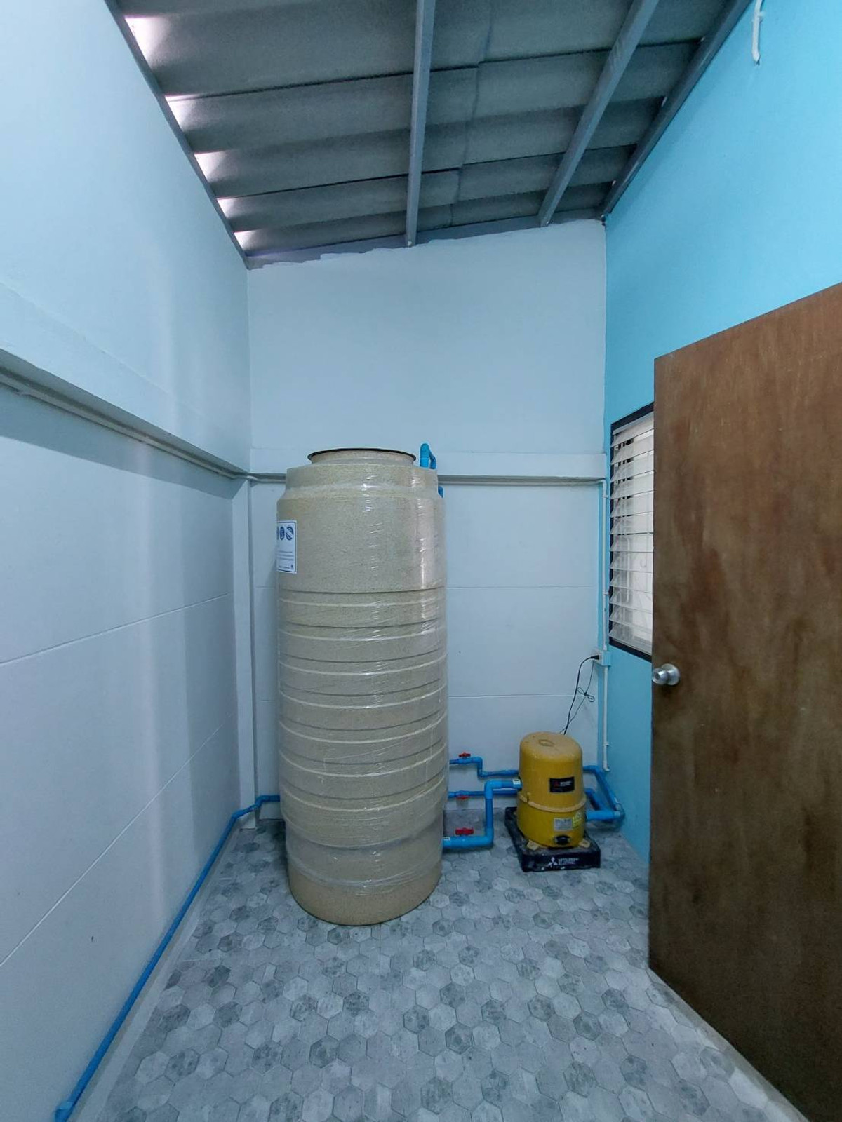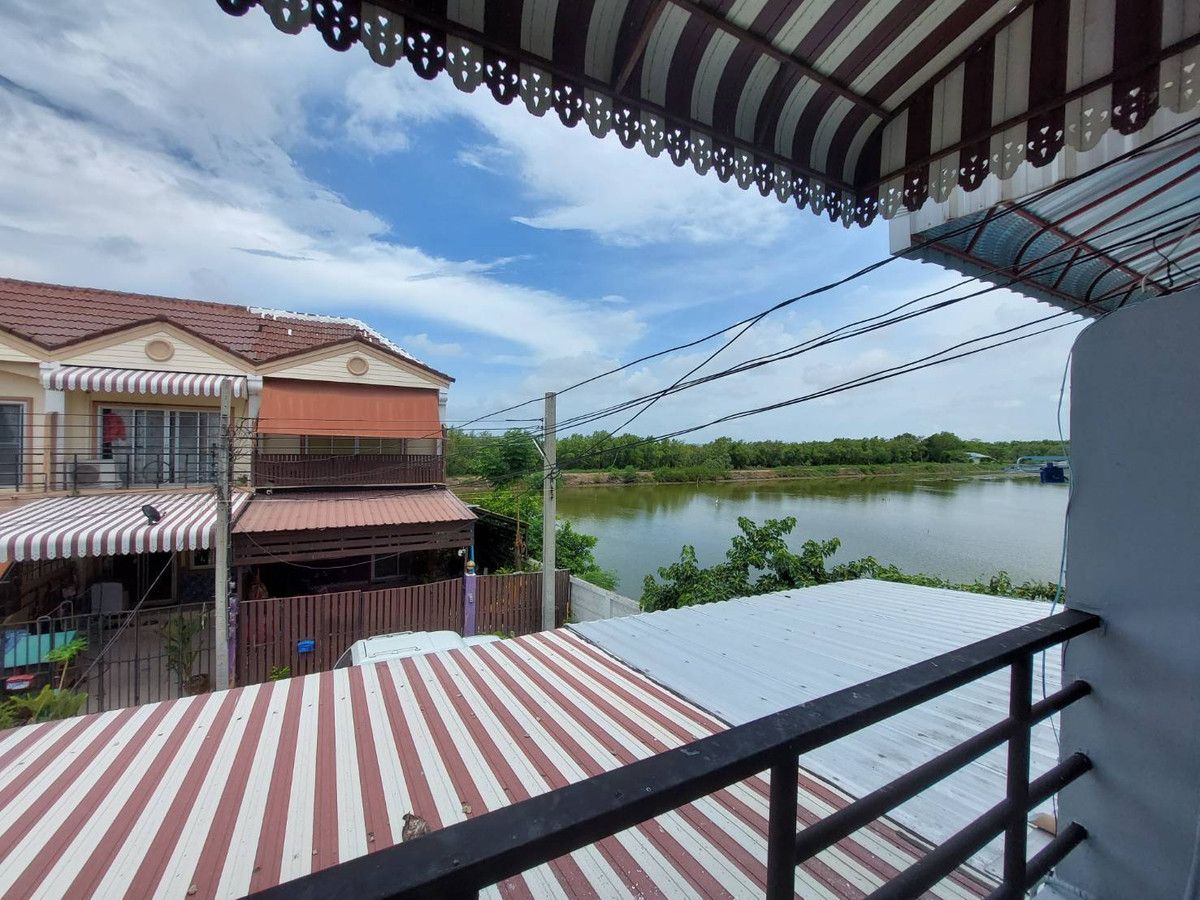 2-story townhouse near Bang Pu Industrial Estate. Facing the sea, sea view, house number 885/51, has 2 bedrooms, 2 bathrooms, kitchen, living room, for rent 5,500 baht per month, no furniture, no air