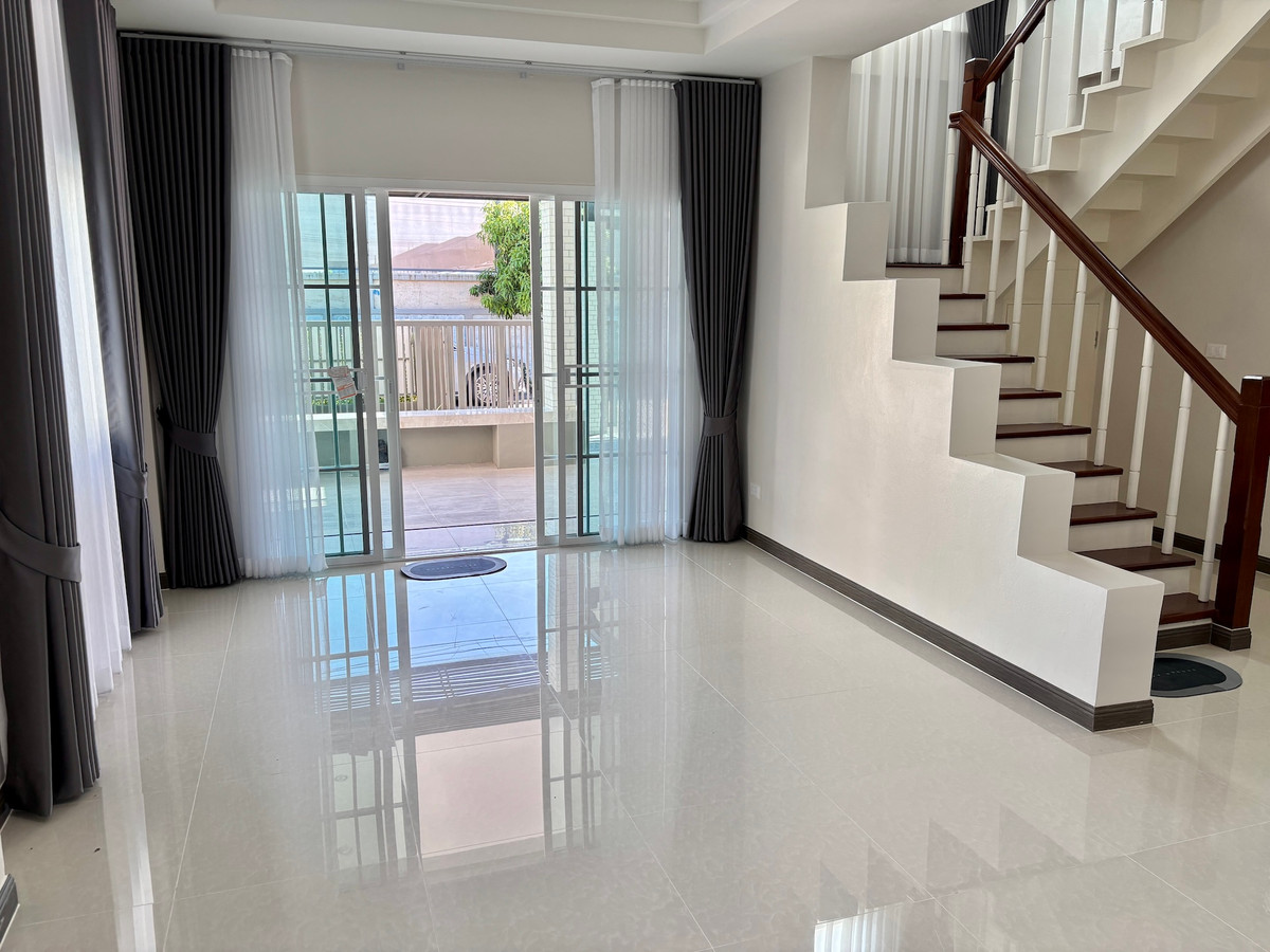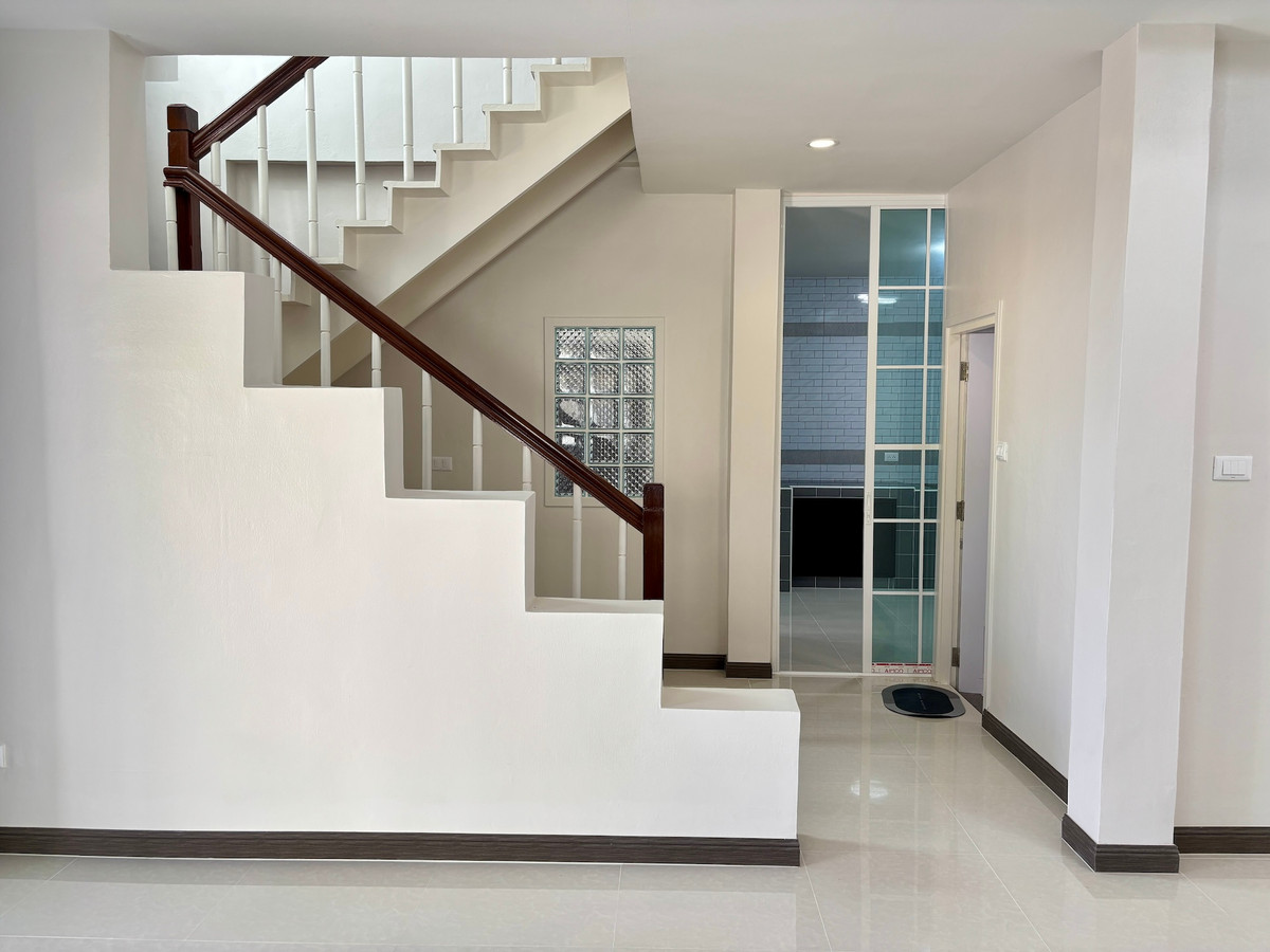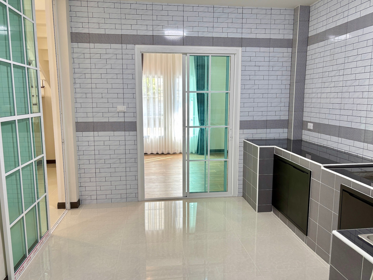 Single house 61 sq m in Safari World area. Newly renovated, the whole house is beautiful and ready to move in - The house is located in Burirom Village. Along Khlong Song Road, Soi 23, Khlong Sawa Tawan Tok Subdistrict, Khlong Sawa District, Bangkok - It is a two-story detached house, land area 61 square wah, usable area 160 square meters - has 4 bedrooms (1 bedroom on the ground floor), 2 bathrooms, 2 kitchens, 1 multi-purpose room. Parking for 2 cars in the house - House in beautiful condition, completely renovated, flooring, electrical system, plumbing system, paint, additions to the front of the house, back of the house, side of the house - Free curtain set, water tank, 1 air conditioner - The village is next to the road along Khlong Song. Easy entry and exit Location and nearby places - near Safari World - near Khlong Sam Wa District Office - near Fashion Island, Big C, Lotus - near Synphaet Hospital Nopparat Hospital - near Kanchanaphisek Expressway - near the Pink Line MRT - near Suvarnabhumi Airport