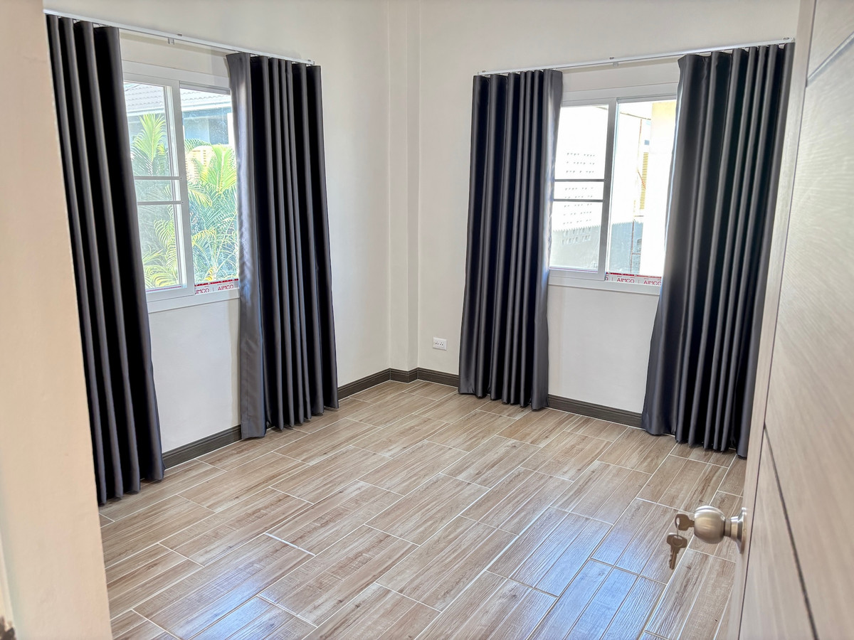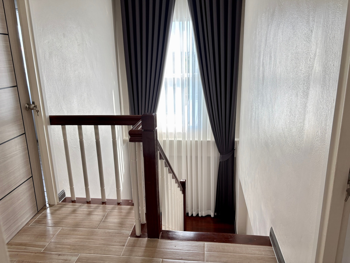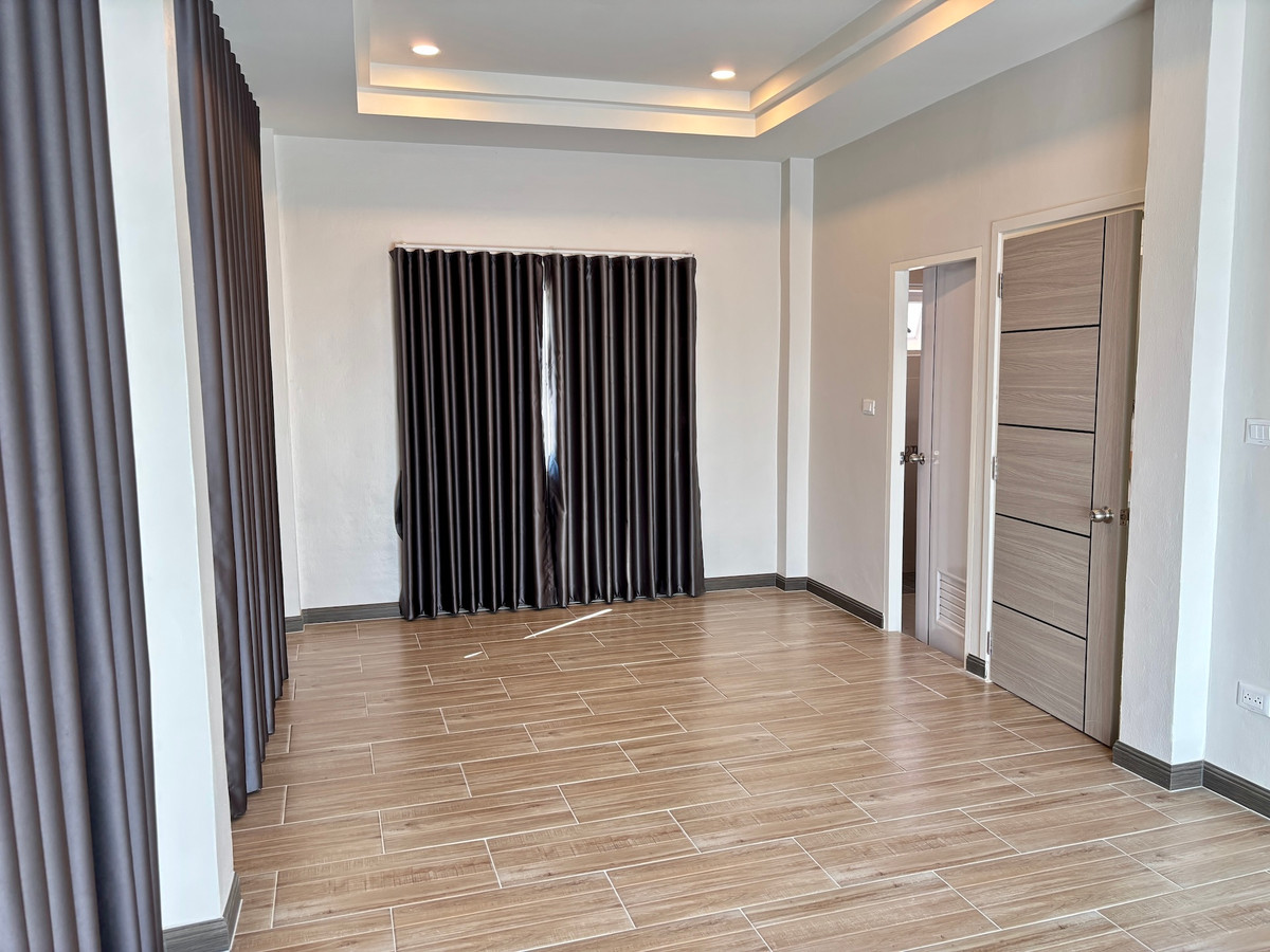 Single house 61 sq m in Safari World area. Newly renovated, the whole house is beautiful and ready to move in - The house is located in Burirom Village. Along Khlong Song Road, Soi 23, Khlong Sawa Tawan Tok Subdistrict, Khlong Sawa District, Bangkok - It is a two-story detached house, land area 61 square wah, usable area 160 square meters - has 4 bedrooms (1 bedroom on the ground floor), 2 bathrooms, 2 kitchens, 1 multi-purpose room. Parking for 2 cars in the house - House in beautiful condition, completely renovated, flooring, electrical system, plumbing system, paint, additions to the front of the house, back of the house, side of the house - Free curtain set, water tank, 1 air conditioner - The village is next to the road along Khlong Song. Easy entry and exit Location and nearby places - near Safari World - near Khlong Sam Wa District Office - near Fashion Island, Big C, Lotus - near Synphaet Hospital Nopparat Hospital - near Kanchanaphisek Expressway - near the Pink Line MRT - near Suvarnabhumi Airport