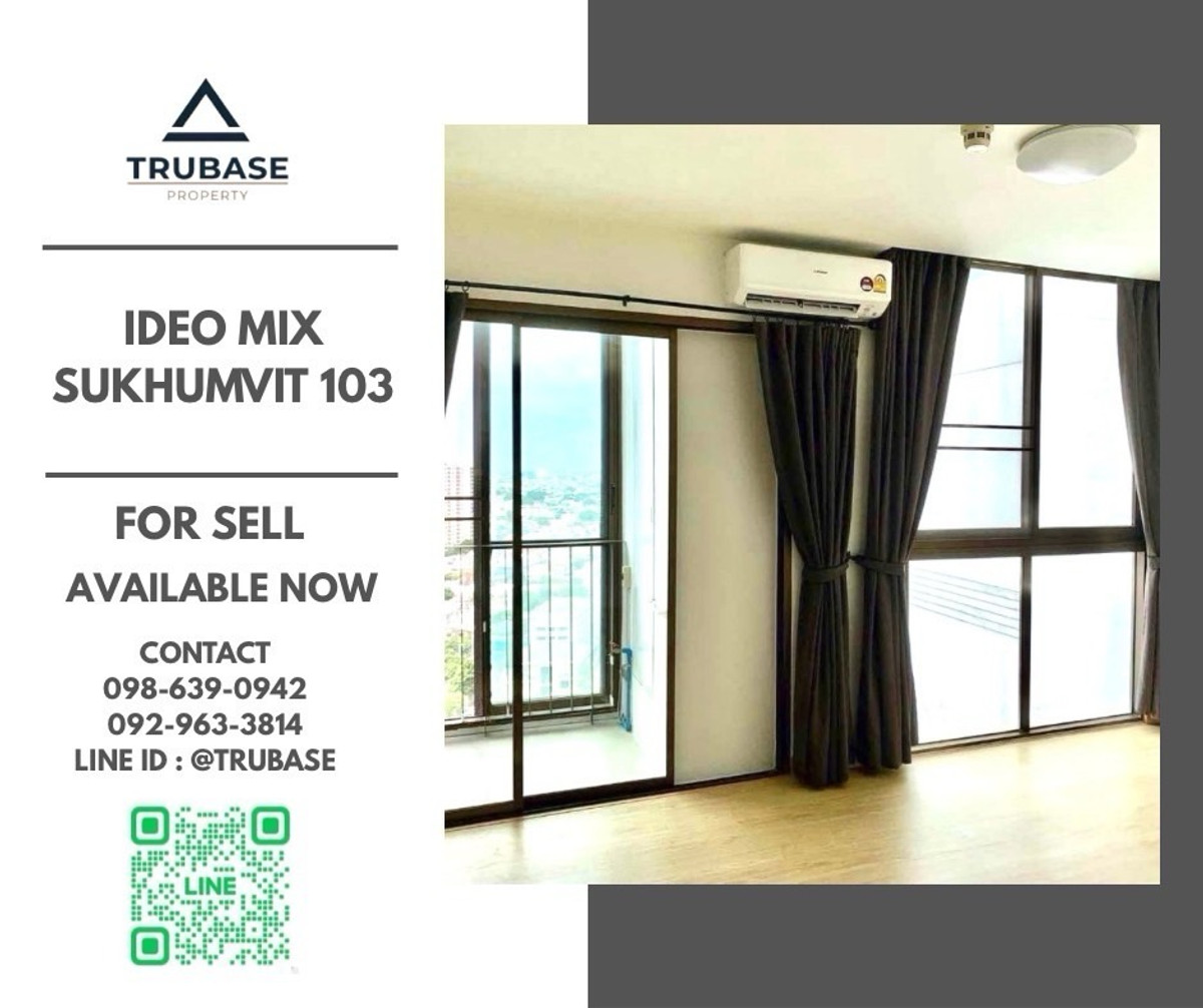 Asset code: TBEVCC3 Project: Ideo mix sukhumvit 103 Project next to BTS Udomsuk, convenient travel, close to True digital park and Udomsuk market. It is a condo that meets the needs of modern city life, suitable for both own residence and investment for rent Type: Studio | 1 bathroom Size: 24.34 sq m Floor: 21 Building: A 🔥Special price only: 2,150,000 baht🔥 Ask for more information | Make an appointment to view the room ❇️Contact us ❇️ 📱 Contact number / Contact number 💬 Line Official ID : @trubase 🔗 Line Official Link : https://line.me/R/home/profile?id=@trubase