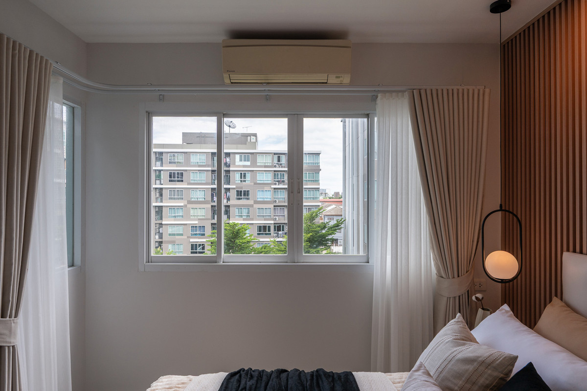 S866 💥 1-bedroom condo for sale at #BTSBearing. Easy loan and easy installments! Salary: 15,000 baht. 💸 Closed kitchen with balcony access, no annoying odors. 🍳 💑 Comfortable for two people, feels lik