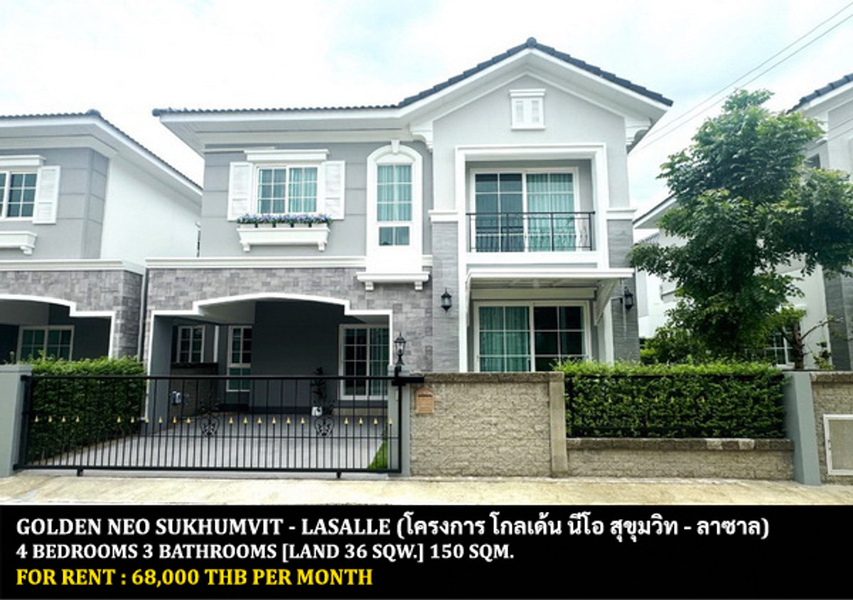 HOUSE FOR RENT PROPERTY PROJECT : Golden Neo Sukhumvit - Lasalle LOCATED : Soi Sukhumvit 113 , Samrong Nue , Amphoe Muang , Samut Prakarn PROPERTY TYPE : Semi Detached House BEDROOMS / BATHROOMS : 4 Bedrooms 3 Bathrooms LAND SIZE : 36 Sq.w. USABLE AREA : 150 Sq.m. CONDITION : New house , Fully furnished NEARBY : - BTS Samrong - Imperial World Samrong ------------------------------------------------------- RENTAL PRICE : 68,000 Baht / Month ------------------------------------------------------- Please contact us for viewing or more details CALL : Contact number Nat [Nathan] LINE ID : @roomfinderthailand [Put @ Front ID] WHAT'S APP : Contact number WECHAT : saintz69 EMAIL : Contact email llllllllllllllllllllllllllllllllllllllllllllllllllllllllllllllllllllllllllllllllllllllll ROOMFINDER (THAILAND) CO.,LTD. PROPERTY AGENTS HOMEPAGE : www.facebook.com/roomfinderthailand ------------------------------------------------------- บริษัท รูมไฟเดอร์ (ไทยแลนด์) จำกัด ตัวแทนรับฝาก ขาย เช่า อสังหาริมทรัพย์ทุกชนิด
