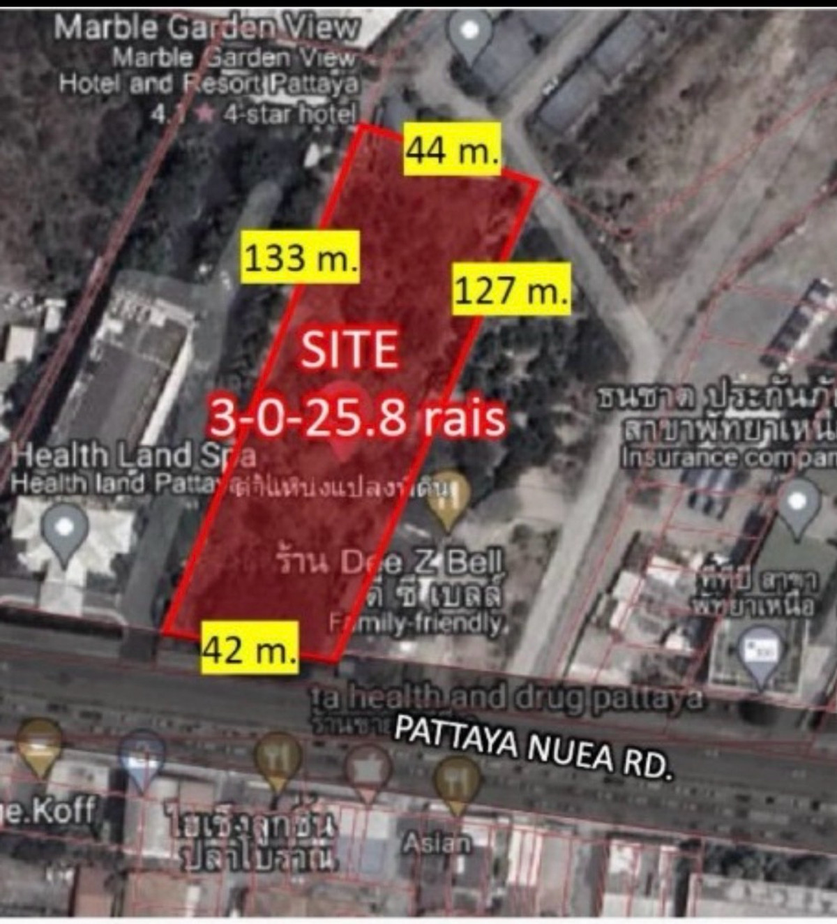 Beautiful plot of land next to Health Land, North Pattaya / near a department store / near a school / near a hospital.