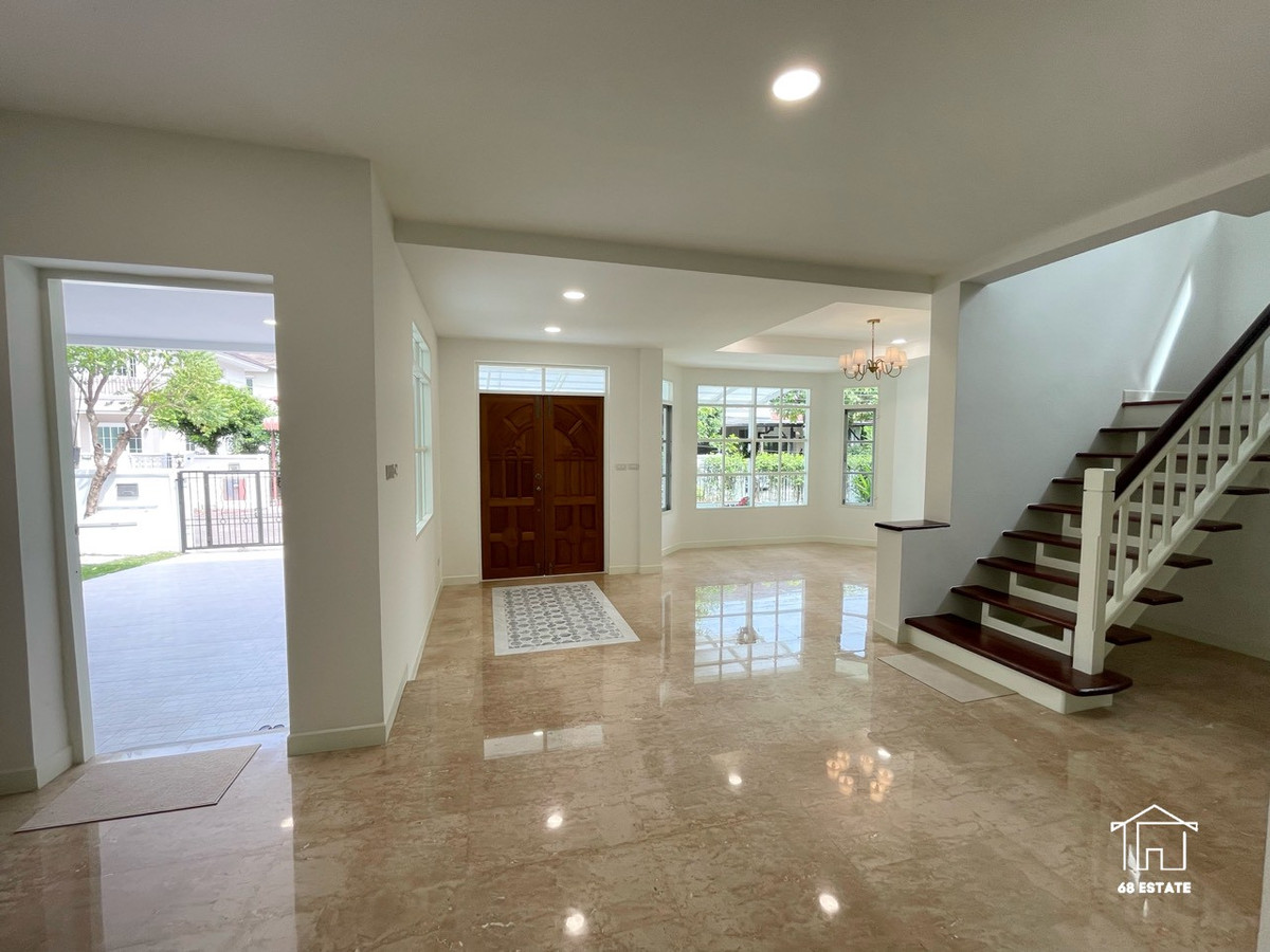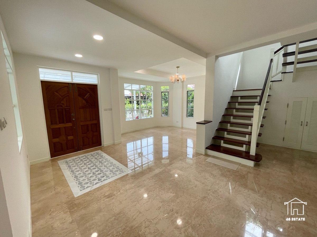 **** Selling for 9,290,000 baht **** (Nine million two hundred and ninety thousand baht only) (Transfer costs 50-50) * Land area 85 sq m. * 2 floors * 4 bedrooms (large Master Bedroom) * 3 bathrooms * 1 multi-purpose room - 1st floor * Large Family Area - 2nd floor * Large kitchen, new built-in with teak Isand * 1 maids room (separate zone) * Parking for 2 cars * North Highlight **** Newly decorated, beautiful, very livable **** Terrace overlooking the garden to the east. Receive the morning sun **** Lovely neighbors **** Near the large garden of the project **** Common garden + swimming pool (Olympic standard size) Location and transportation **** Near... - Expressway entry and exit point Sukhapiban 5 - BTS Saphan Mai **** Connected to many roads: Theparak, Watcharapol Intersection, Ramintra, Phahonyothin. Outer ring Google map: https://maps.app.goo.gl/1gGe4jVjSDaYFyzF6?g_st=il (Interested in making an appointment to view? Please contact 1 day in advance. 68 Estate Contact number Contact number LINE: @68ESTATE https://lin.ee/INstRzg FB: https://www.facebook.com/68estateagent?mibextid=2JQ9oc TIKTOK: https://www.tiktok.com/@68estate?_t=8faS1h5hTe6&_r=1 68 ESTATE Accepting sales, rentals, all types of real estate, loan consultation. Complete care until transfer day #Single house for sale Nantawan Watcharaphon #sanitary 5 #Ramindra #Phahonyothin #Theparak #Watcharaphon Intersection #Near the expressway #Near the BTS #Second-hand houses in good condition, cheap price #Accepting deposits for sale of houses #Selling land #Selling condos #Accepting deposits for sale of all types of real estate #Accepting loan consultations #Complete care until transfer day #HomeForSale
