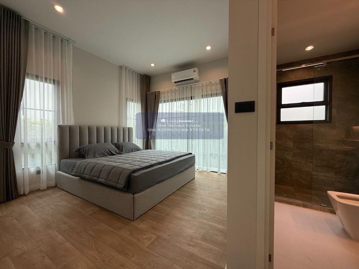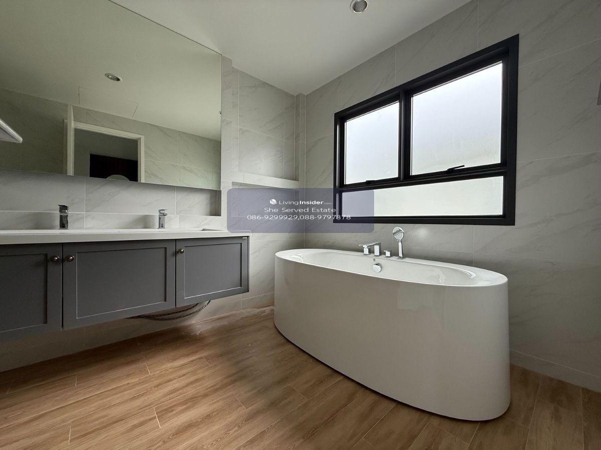 Setthasiri Bangna KM.10 | Setthasiri Bangna KM.10 – Sansiri Project Brand new 2-story detached house, decorated in Sansiri Luxury style, ready to move in , near the clubhouse. Private atmosphere • Sale: 36.9 million baht • Rent: – 200,000 baht/month (2 year contract) – 280,000 baht/month (1 year contract) House type: AUSTEN (Austen) • Land area 75 sq m. • Usable area 310 sq m. • 4 bedrooms • 5 bathrooms • Living room • Multipurpose room • Dining area • Kitchen • Maids room • Parking for 3 cars For more information: 📞 Contact number (Anew) 📞 Contact number (Punn) Line Official • @sheserved
