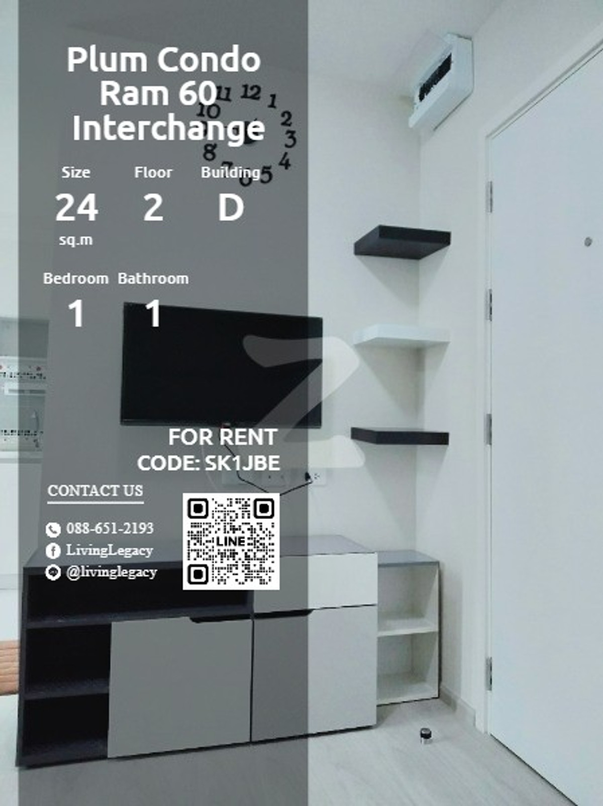 SK1JBE Condo for rent Plum Condo Ram 60 Interchange 24 sq m, 2nd floor, Building D line id : @livinglegacy