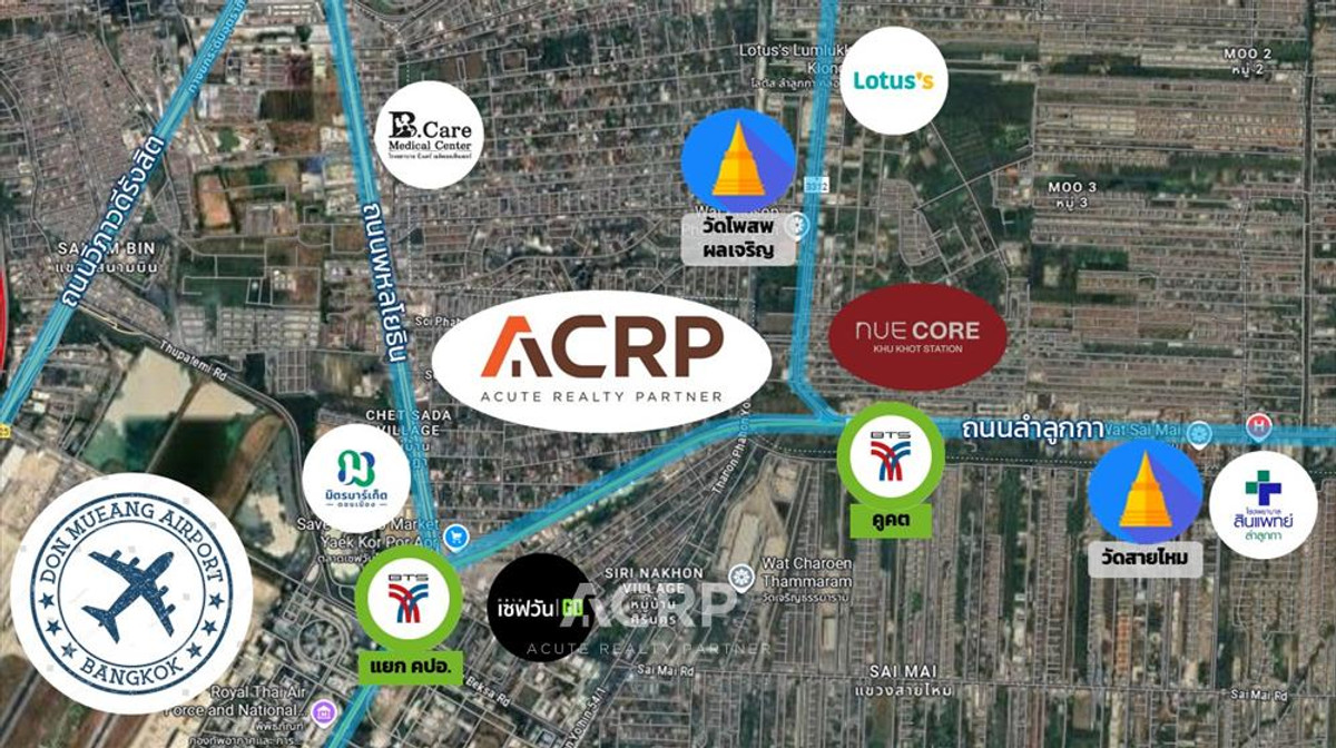 House large plot of land Near BTS Khu Khot Only 5 minutes with land area of ??more than 908 Sq m Looking for a house with a large plot of land in Phahonyothin Sai Mai area, close to the city, very convenient to travel, don't miss it 📌Price 65 Million baht 📌Code : 160072 ✅Property Details - 2-story detached house on a large 908 sq wah plot of land. - Usable area approximately 550 sq m. - 3 bedrooms, 4 bathrooms - Maid's room, small office - 65 m wide, 60 m deep ▶️Great value location - 5 minutes from Khu Khot BTS station - Convenient access via Phahon Yothin, Vibhavadi, and Lam Luk Ka roads 🚩Nearby Places - Don Mueang Airport - B.Care Hospital / Synphaet Lam Luk Ka Hospital - Save One Go Market, Kapo Intersection - Mitr Market, Don Mueang ติดต่อสอบถามเพิ่มเติมได้ที่ Contact acuterealtypartner Call Contact number Call Contact number Website : www.acr-partner.com Facebook : Acuterealtypartner Email : Contact email Line : @acuterealtypartner Line Sales : @sale_11