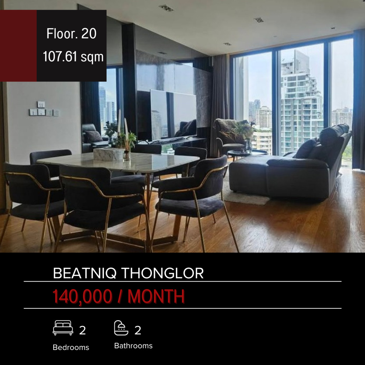 For Rent Ready to move Condo : Beatniq thonglor Size : 107.61 SQM Floor. 20 Type: 2 bedroom 2 bathroom Rent Price : 140,000 Baht Tel. Contact number ( Anda ) WhatsApp Contact number (Anda) Line @285gshuc WhatsApp Contact number (Anda) #BT20