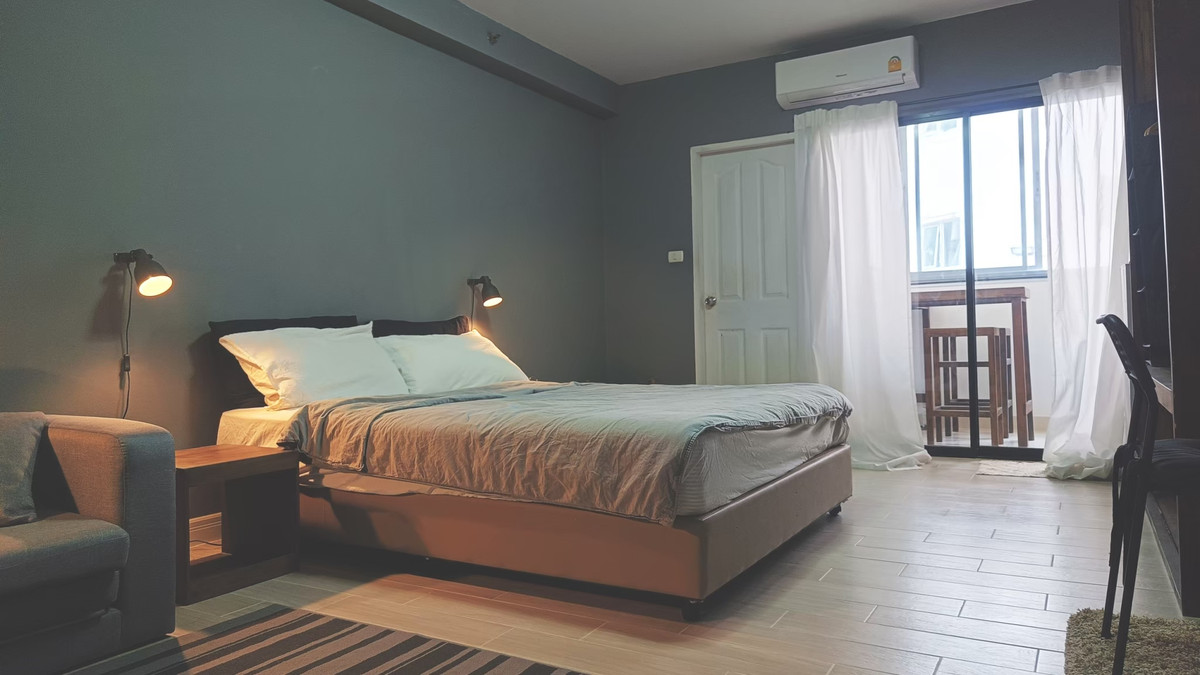 ✅️Large room size 29 sq m. There is a bedroom, living room, closed kitchen, bathroom, wet and dry separation, wide balcony with table and chairs for eating and sipping coffee. ✅️Scan your face to enter the building to increase safety in living. ✅️Building I1​ (I-One) (8 floors, not crowded, there is parking under the building) ✅️2nd floor (walk up to the room) No need to wait for the elevator) Under the building there is a legal entity that will receive the parcel for you.