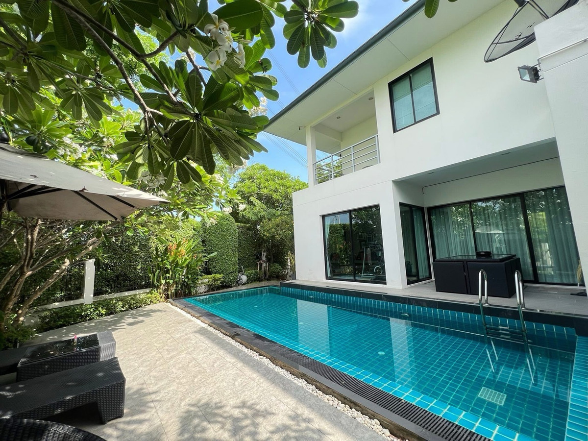 For rent ❗️Blue lagoon village 2 (pool villa) 💵 Rent 160000 per month (reduced from price 180000) 💵 Selling for 39 million baht (reduced from 45 million) 🔥Cant find this price. Land area 119.30 square wah🔥 🏡Decorated with built-ins throughout the house. Fully furnished Complete with electrical appliances For rental price including common fees. Take care of cleaning the pool, trimming the garden, spraying for termites 🖊️House details Area 1 ngan 19.30 square wah Usable area 390 square meters 4 bedrooms, 6 bathrooms 1 exercise room 1 family room 1 maids room Swimming pool with salt system Large garden (1st floor bedroom used as a fitness room. But it can be turned into a bedroom 🚗Parking for 3 cars Corner house North direction No houses attached to the back and left side. Good wind, good ventilation all year🍃🍃 Wide garden area. You can organize a party easily. There is a Chinese cable channel. Suitable for people who like to have high private space🏡 📝 Minimum rental contract 1 year , deposit 2 months, advance 1 month. ✅Accepting customers of all nationalities Location📍 * Suvarnabhumi Airport * Mega Bangna * Central Bangna * BITEC Bangna * Robinson Lat Krabang * Chularat 9 Airport * Princess Hospital * Vibharam Hospital * Samitivej Srinakarin Hospital * Berkeley International * Triamudom Suksa Pattanakarn * Ramkhamhaeng 2 * D-Prep International School * Charter International School Contact: Khun Nae 📞 Contact number Line Official 👉🏻 https://lin.ee/R7KYLD7