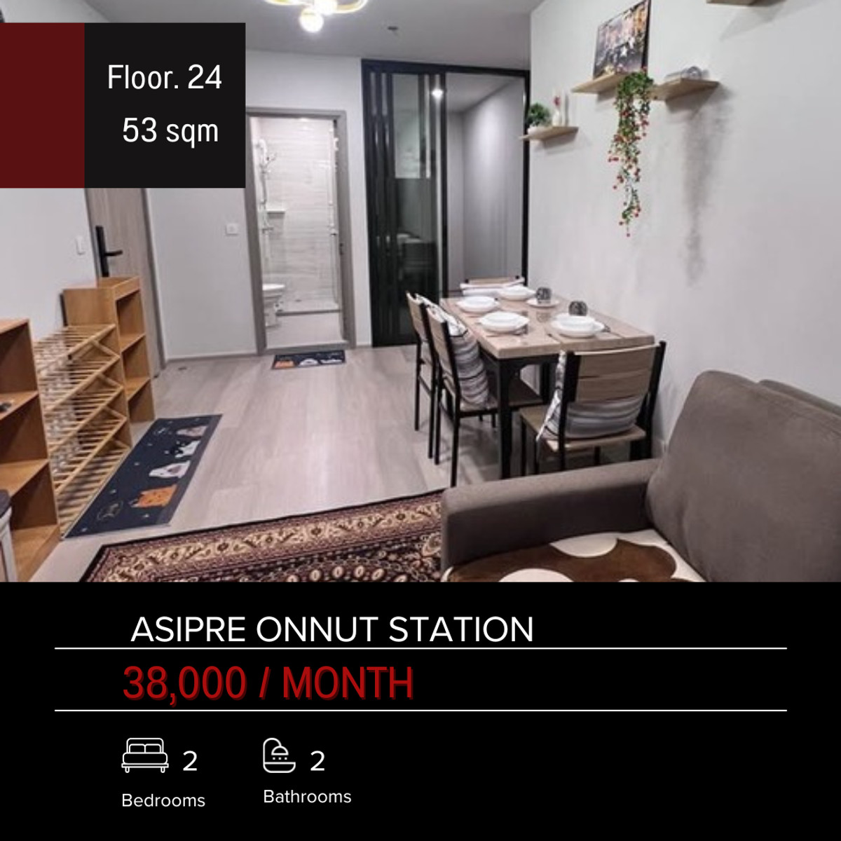 For Rent Ready to move Condo : Asipre Onnut Station Size : 53 SQM Floor. 24 Type: 2 bedroom 2 bathroom Rent Price : 38,000 Baht Tel. Contact number ( Anda ) WhatsApp Contact number (Anda) Line @285gsh