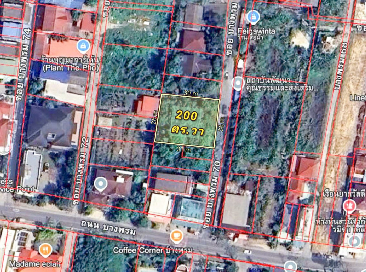 Beautiful land already filled, 200 square wah Enter from Phutthamonthon Sai 1 Road, only 180 meters Soi Bang Phrom 70, Taling Chan, Bangkok Price 13,500,000 baht - Quiet, convenient travel - Suitable for building a residence Details :: - Size 200 sq m. - Width 26 meters. - Depth 30 meters - Rectangular land plot - Land facing east Travel :: - Opposite Yuyenwittaya School - Near Food Villa Market - Access from Ratchapruek Road - Enter Soi Bang Phrom 70 50 meters - 180 meters from Phutthamonthon Sai 1 - 300 meters from Phra Thep Tad Mai Road. Meter Location: Soi Bang Phrom 70, Bang Phrom Subdistrict, Taling Chan District, Bangkok Location: https://maps.app.goo.gl/g54DUjyw989tGzry7 Price 13,500,000 baht - Transfer fee is paid in half Ask for more details or make a viewing appointment at Khun Phong. : Contact number Click add Line : https://line.me/ti/p/ZMnvQIW9zo