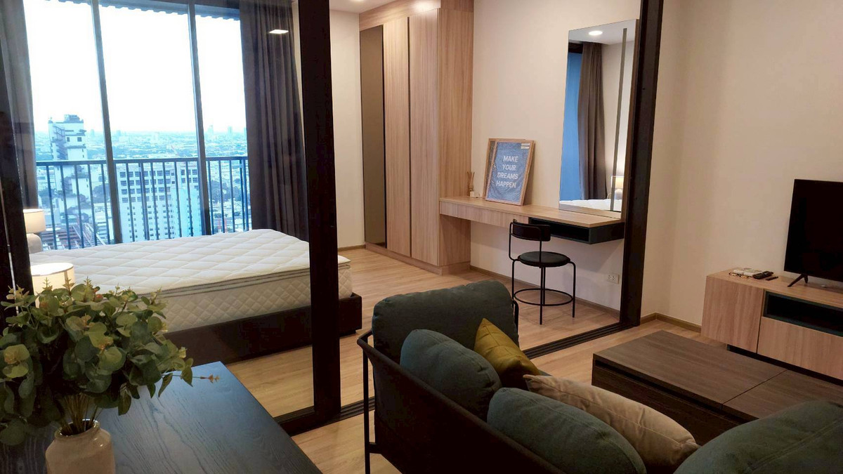 High-floor unit with an amazing view! 🌆✨ XT Phayathai for rent at 24,000 THB, fully ready to move in. 🏡💙