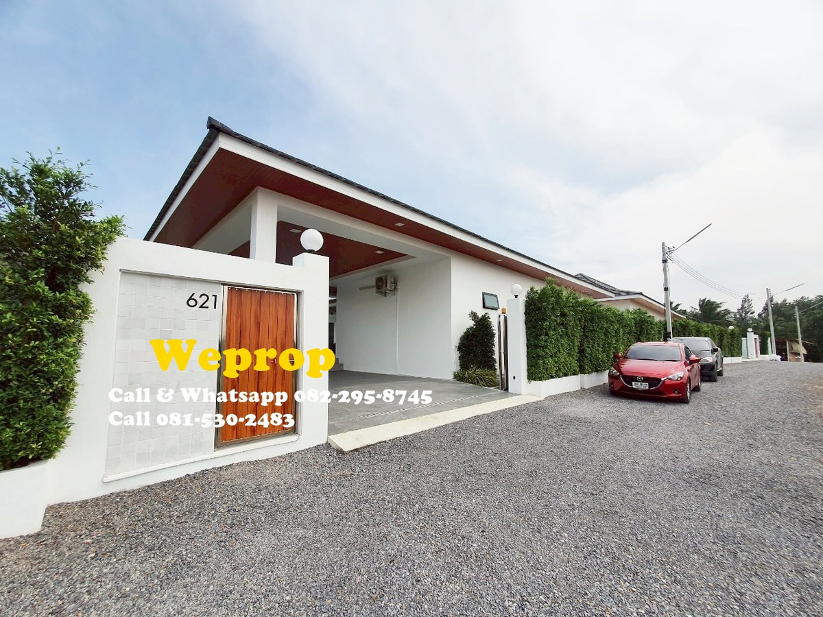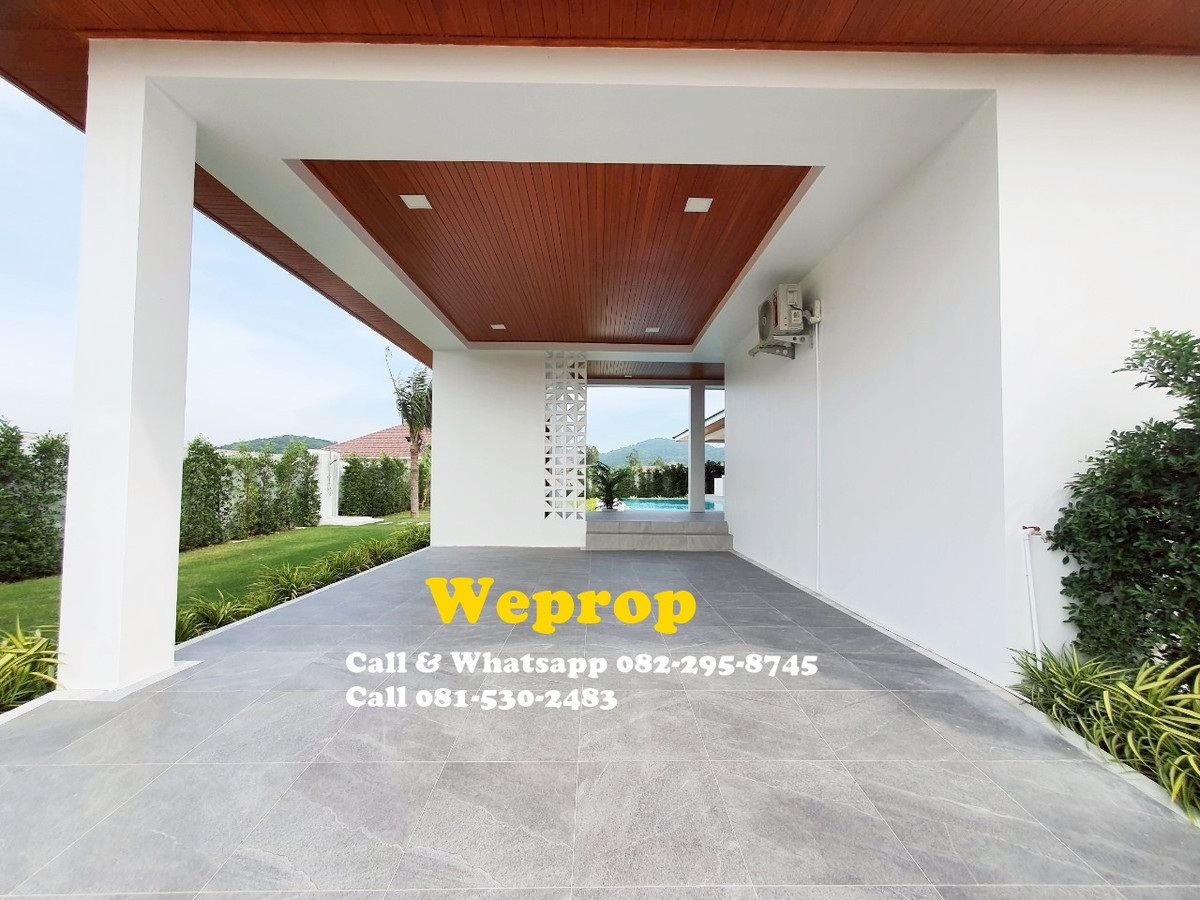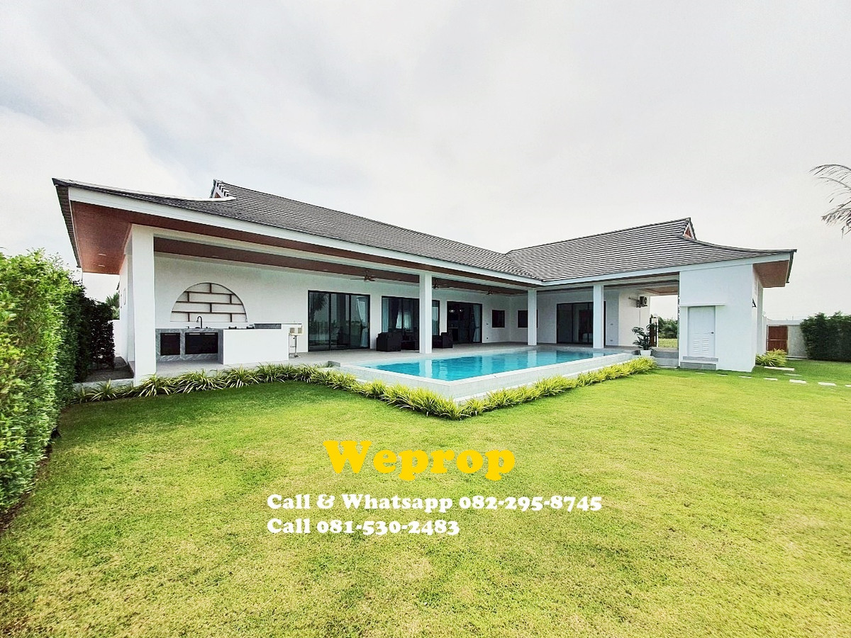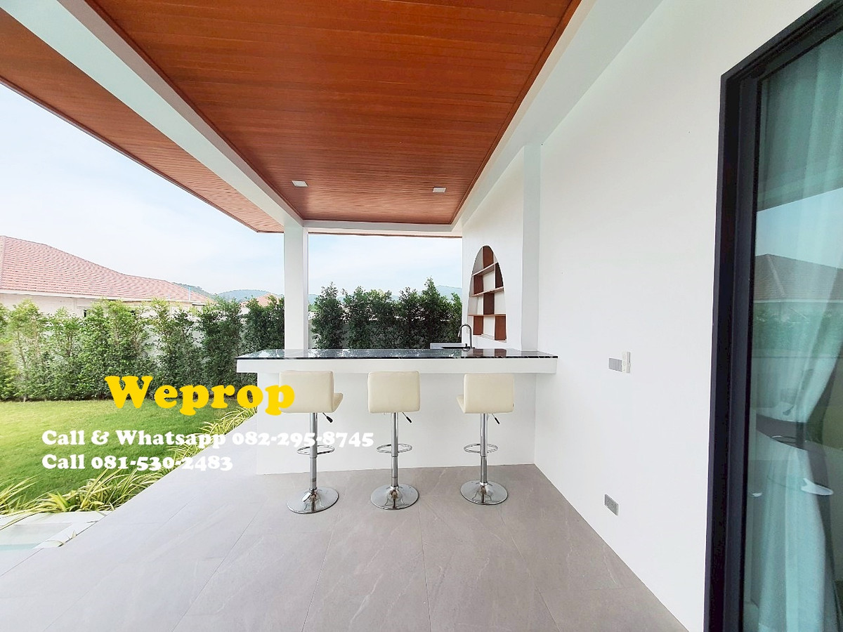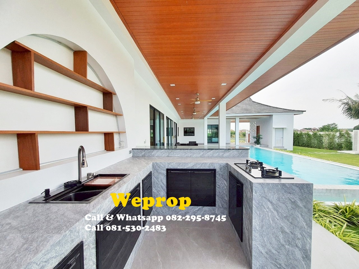 Huahin home for sale 4 bedrooms 3 bathrooms Villa Sell price is 9,900,000 baht excludes furniture. Sell price is 10,290,000 baht includes furniture. Land area 800 sq.m (200 sq.wah) Living 250 sq.m A house is within 25 minutes’ drive to town and HuaHin beach and 20 minutes to By Pass , 5 minutes to SamPan Nam floating market and 15 minutes’ drive to Pineapple golf course. Large convered terrace which is face to swimming pool and garden , also outside kitchen/bar. Inside fully equipped kitchen with stove, hood, oven, microwave, dishwasher and large island and extra lighting over the island. Great size living room with Cathedral ceiling style. Master bedroom with pool access and walk in wardrobe, interior lighting and mirrors. Cathedral ceiling style. Bedroom 2 is with private bathroom and pool access. Others two bedrooms share bathrooms together. Store room/laundry with exit door , ready for washing machine to be plumbed in. Great size swimming pool 12x5 m with infinity edge to 2 sides. Salt Chlorinator system and Jacuzzi . Outside shower. Roof 2 tone SCG cement tiles. good quality metal multi lock doors and windows. Covered carpark 2 cars. 2 large storage water tanks and high pressure water pump are included. Nor Sor 3 kor title deed. Any Information : Pla Papichaya Call & Whatsapp Contact number Call Contact number Email Contact email