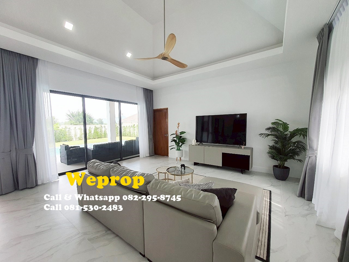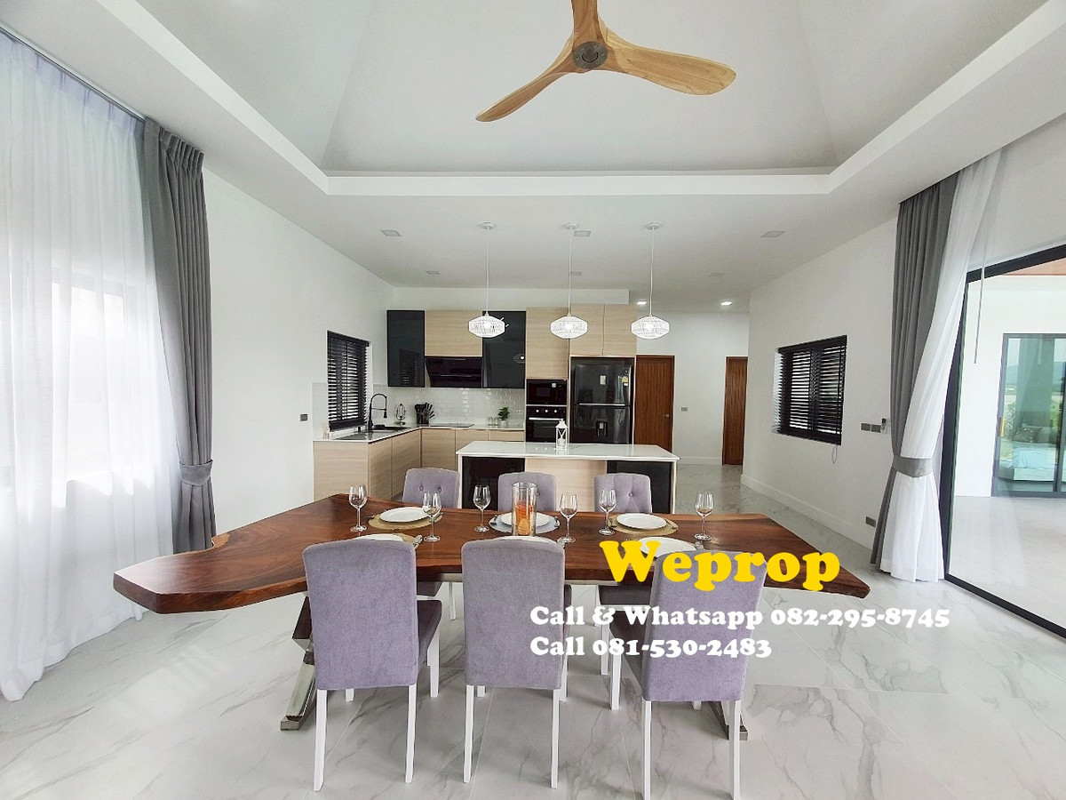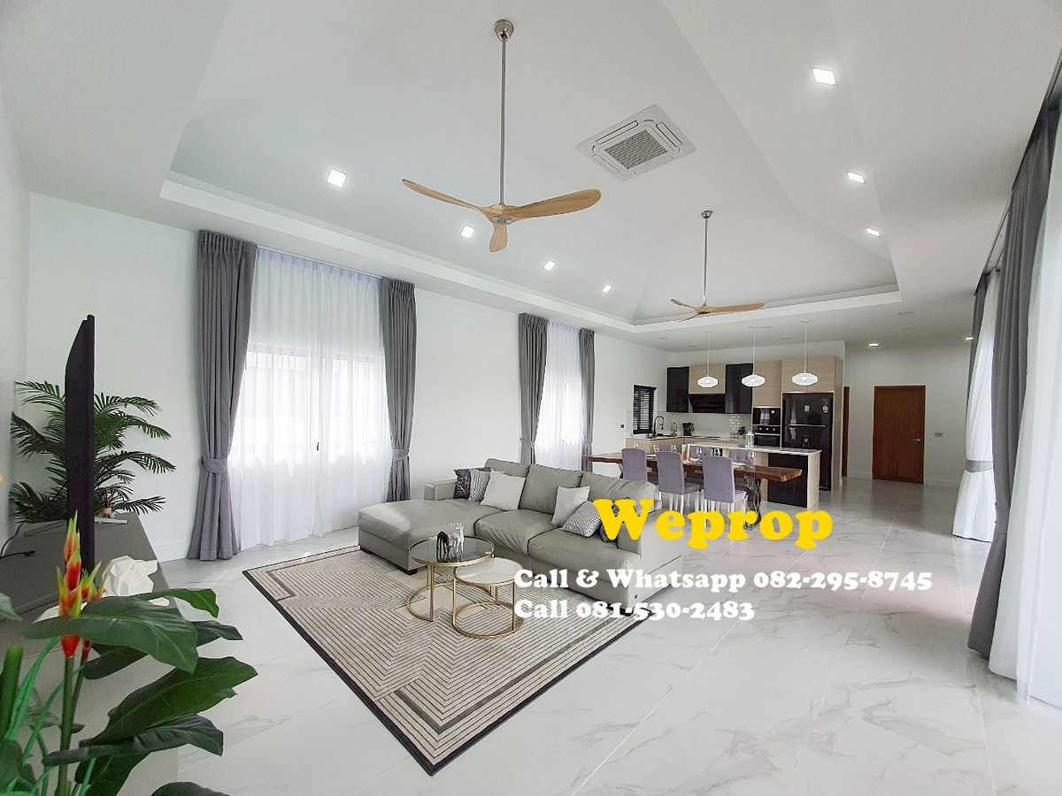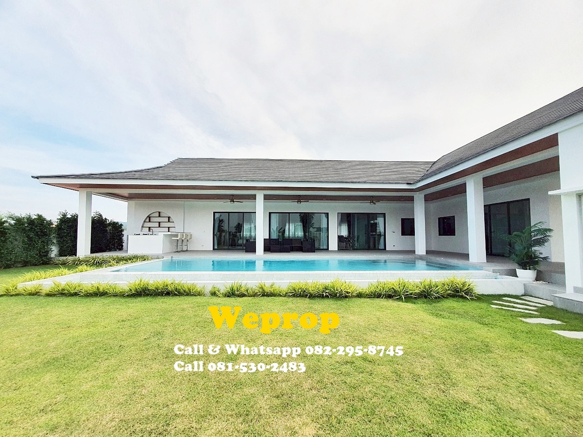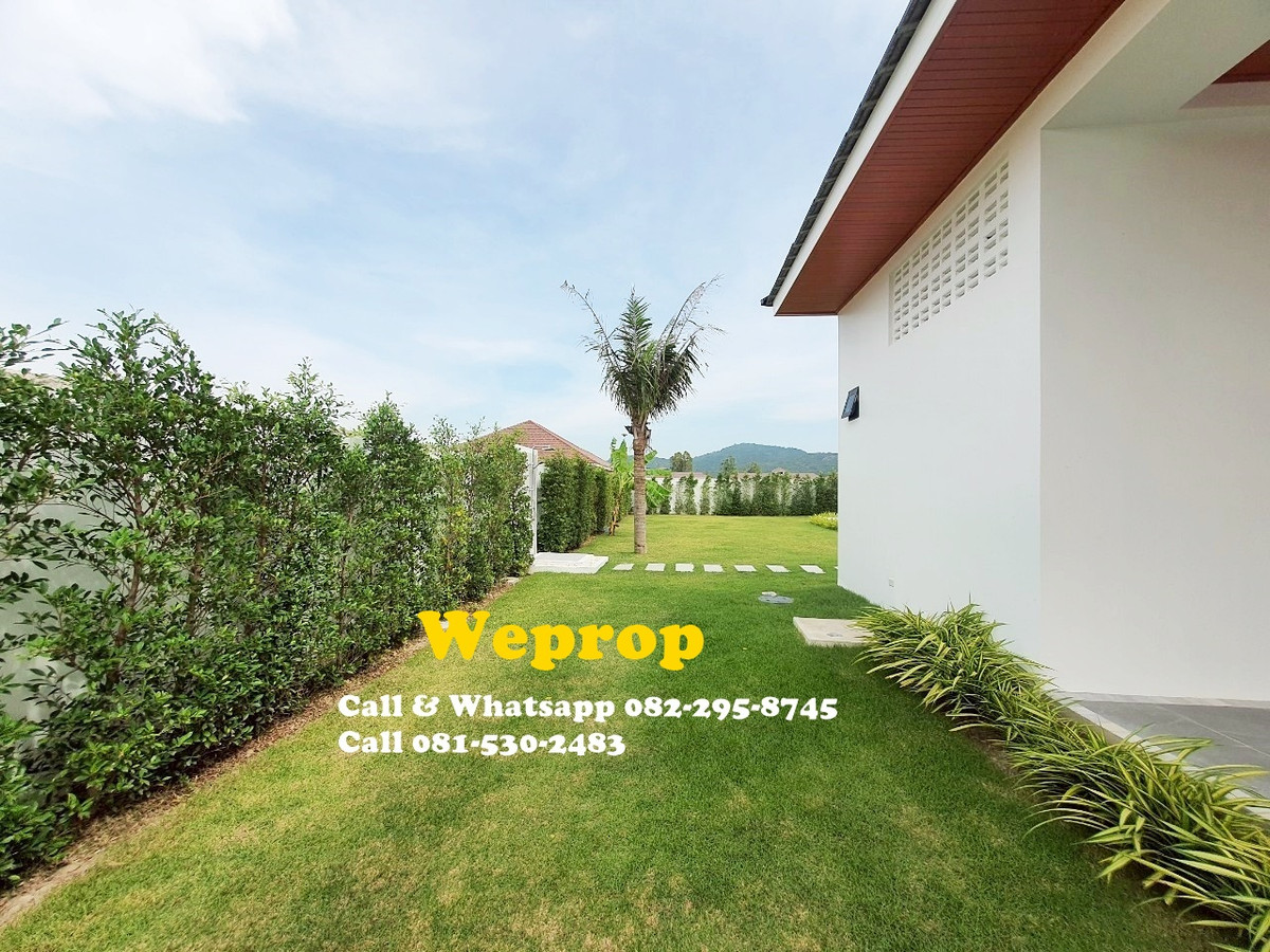 Huahin home for sale 4 bedrooms 3 bathrooms Villa Sell price is 9,900,000 baht excludes furniture. Sell price is 10,290,000 baht includes furniture. Land area 800 sq.m (200 sq.wah) Living 250 sq.m A house is within 25 minutes’ drive to town and HuaHin beach and 20 minutes to By Pass , 5 minutes to SamPan Nam floating market and 15 minutes’ drive to Pineapple golf course. Large convered terrace which is face to swimming pool and garden , also outside kitchen/bar. Inside fully equipped kitchen with stove, hood, oven, microwave, dishwasher and large island and extra lighting over the island. Great size living room with Cathedral ceiling style. Master bedroom with pool access and walk in wardrobe, interior lighting and mirrors. Cathedral ceiling style. Bedroom 2 is with private bathroom and pool access. Others two bedrooms share bathrooms together. Store room/laundry with exit door , ready for washing machine to be plumbed in. Great size swimming pool 12x5 m with infinity edge to 2 sides. Salt Chlorinator system and Jacuzzi . Outside shower. Roof 2 tone SCG cement tiles. good quality metal multi lock doors and windows. Covered carpark 2 cars. 2 large storage water tanks and high pressure water pump are included. Nor Sor 3 kor title deed. Any Information : Pla Papichaya Call & Whatsapp Contact number Call Contact number Email Contact email