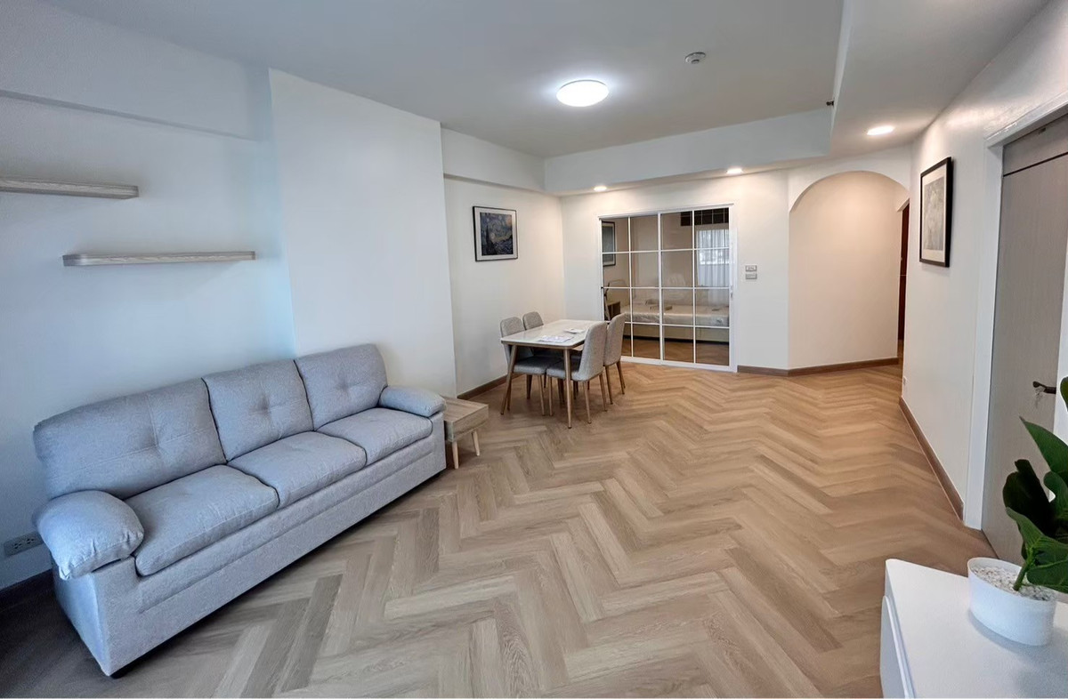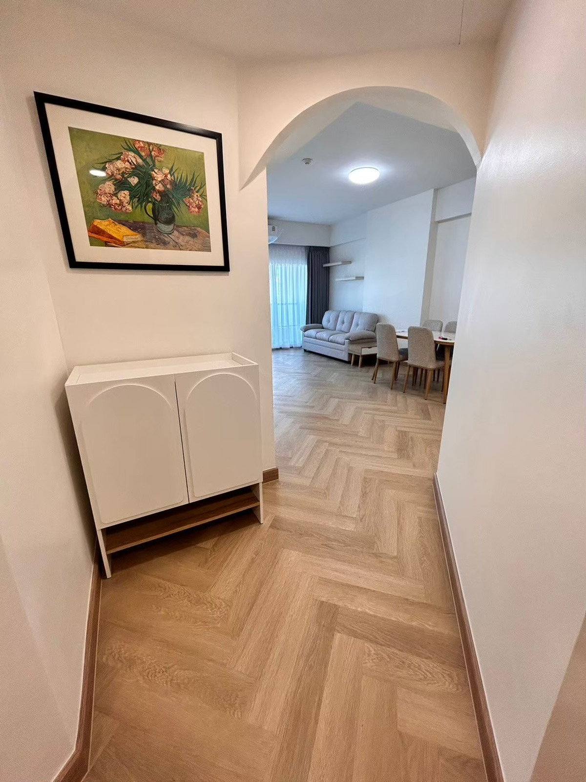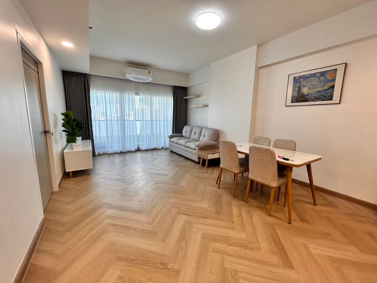 Baan Nonsi Condo (Newly renovated) + 80 square meters, 2 bedrooms, 2 bathrooms + Brand new renovated New furniture + balcony connecting the bedroom and living room unobstructed view + with parking + 42,000 baht per month (long contract negotiable)