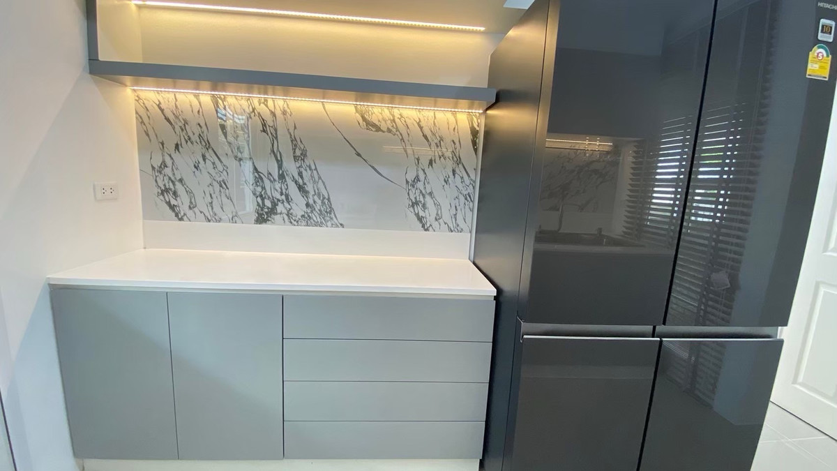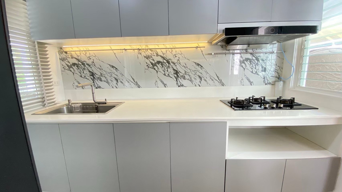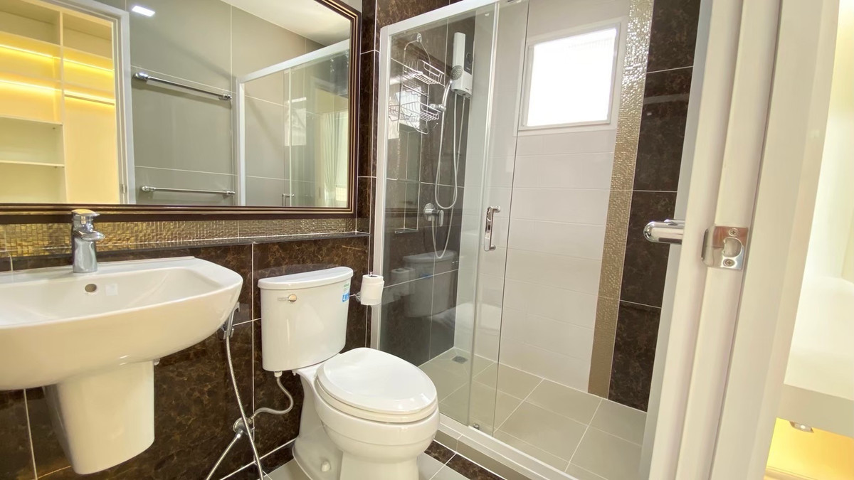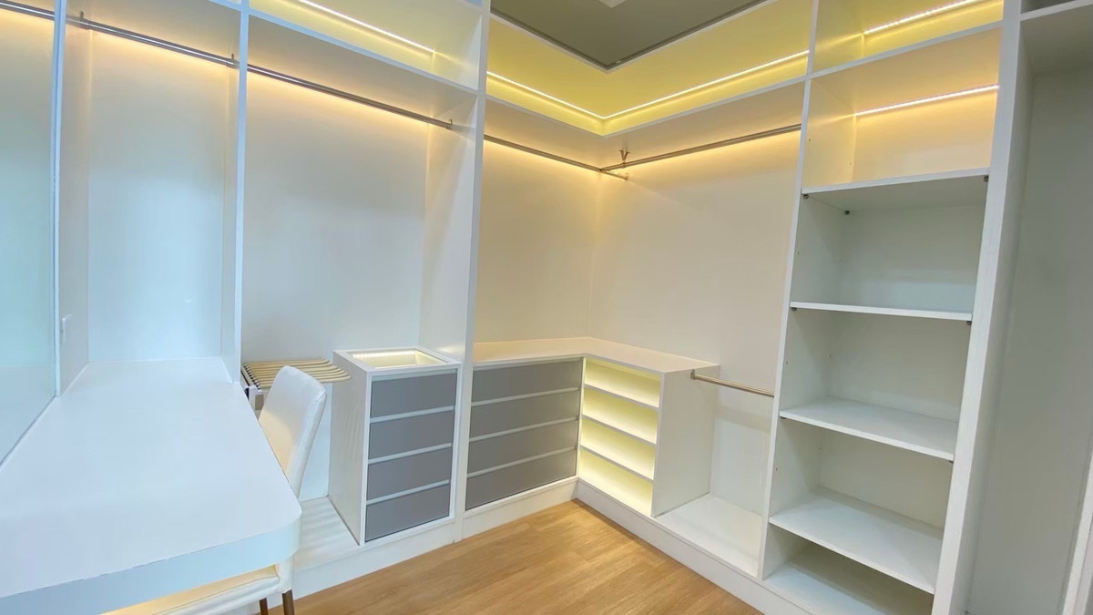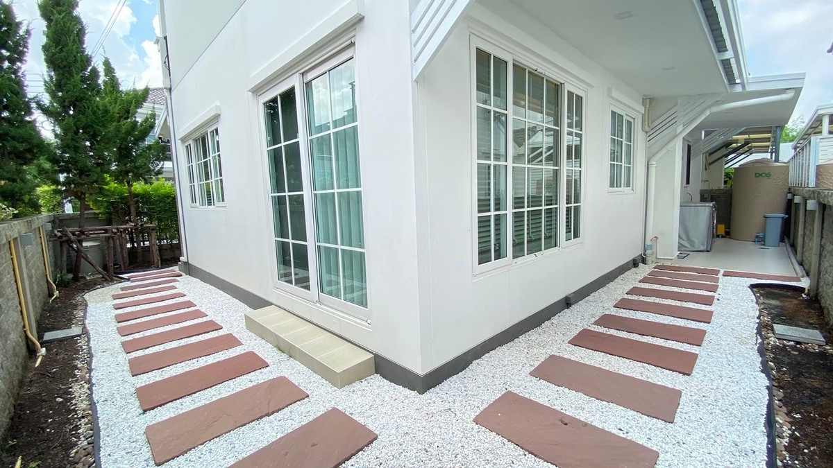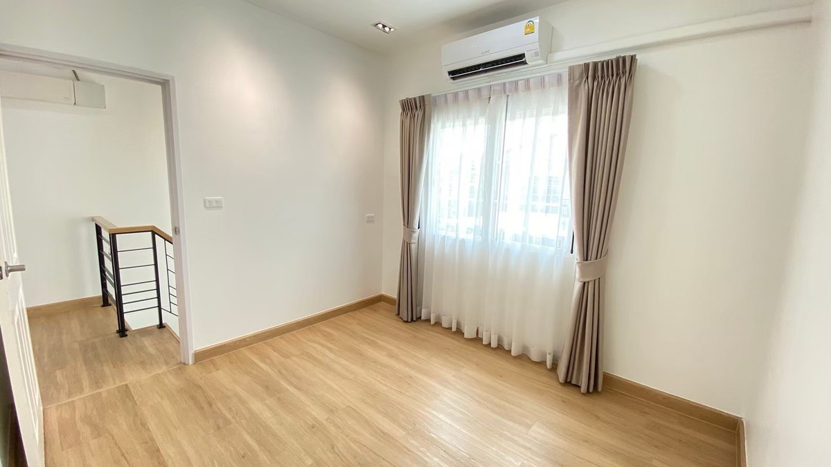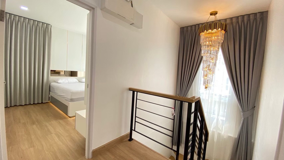 House, usable area 140 sq m, 4 bedrooms, 3 bathrooms, hall, kitchen: Golden Neo Village, Sukhumvit, Lasalle The whole house is decorated with built-ins, ready to move in Living room - TV - Built-in furniture with lights: TV shelf, sofa, lamp, drawers and storage cabinets, etc. -Dining table with chandelier - Curtains + blinds + pleated mosquito net - 4-way air conditioner Kitchen + washing area -Built-in kitchen counter Complete with lights and storage cabinets - Water filter - Hood + stove - Water tank with pump -Washing machine-dryer-4-door refrigerator -Bedroom blinds + pleated mosquito netting -Washer and dryer Bedroom 1 (1st floor) -Bed 3.5 feet + mattress - Built-in furniture: wardrobe + table -Curtains -Air conditioner Bedroom 2 (2nd floor, master) -6 foot bed + mattress - Built-in furniture: TV shelf, bedside table -WALK IN CLOSET, built-in with lights and glass door separating the room -Air conditioner Bedroom 3 (2nd floor) -Bed + 5 foot mattress -Built-in furniture: wardrobe + table + dressing shelf + large mirror -Curtains-Air conditioner Bedroom 4 (2nd floor) -Curtains -Air conditioner Common area -Swimming pool -fitness-garden and playground -lawn and lake 2 electric train lines in one alley transportation routes Sukhumvit Road, Srinakarin Road , Bearing Road (Sukhumvit 107) , Chalerm Mahanakorn Expressway , Kanchanaphisek Expressway Burapha Withi Expressway, BTS Samrong , Yellow Line , beautiful house for rent, livable, good condition, new house There are many ways to enter and exit, easy to find things to eat.