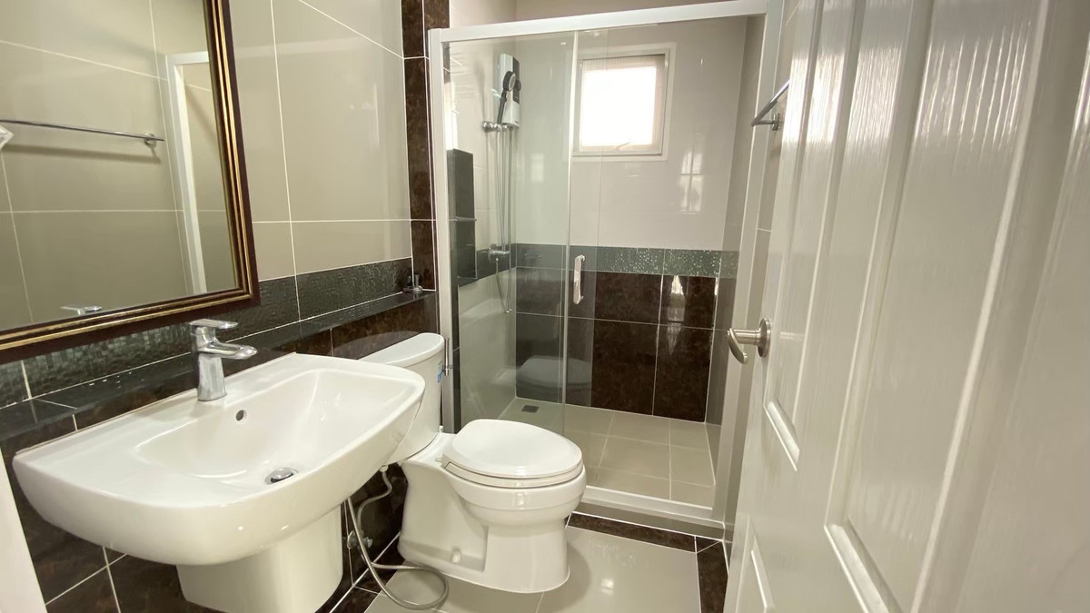 For rent: Twin house, 4 bedrooms, 3 bathrooms, 2 parking spaces, usable area 140 sq m, near the common area, swimming pool.