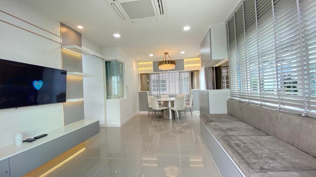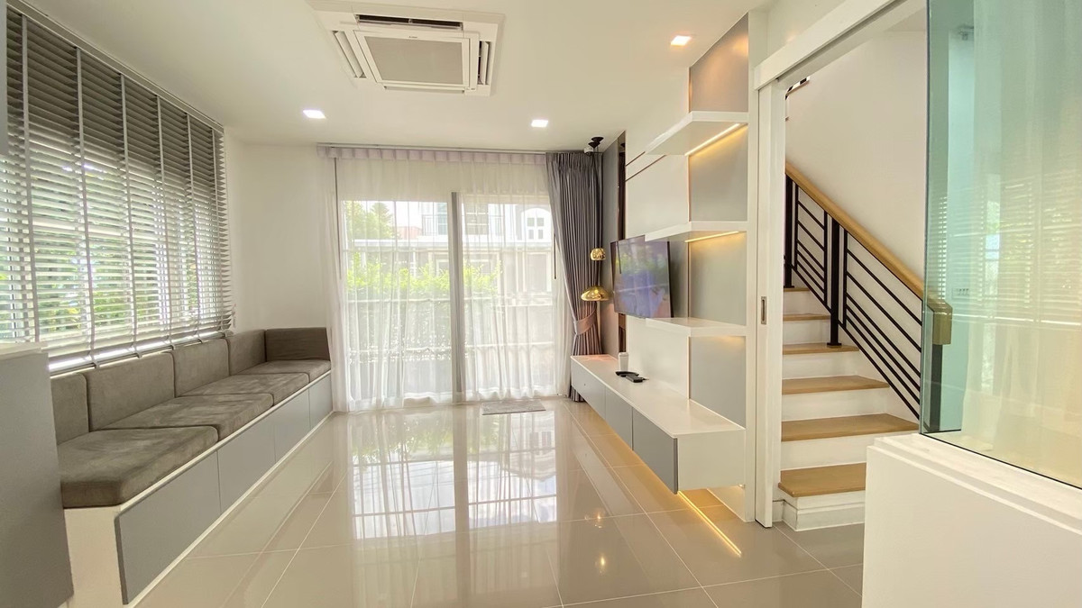 House, usable area 140 sq m, 4 bedrooms, 3 bathrooms, hall, kitchen: Golden Neo Village, Sukhumvit, Lasalle The whole house is decorated with built-ins, ready to move in Living room - TV - Built-in fu