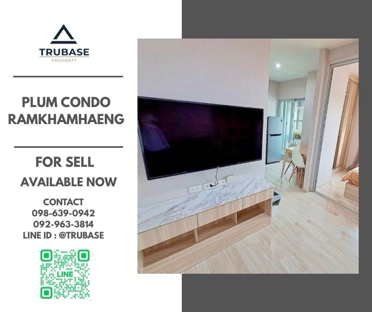Property code: TBELM8 📍 For sale Plum Condo Ramkhamhaeng Station (Plum Condo Ramkhamhaeng Station) Near Airport Link Ramkhamhaeng, only 250 m. 🚆✨ Condo, high floor, fully furnished, ready to move in ✔️ Near Airport Link Ramkhamhaeng, only 250 m., easy to walk to 🚆✨ Type: 1 bedroom | 1 bathroom Size: 23 sq m Floor: 25 🔥Special price only 1,750,000 baht🔥 Ask for more information | Make an appointment to view the room ❇️Contact us❇️ 📱 Contact number / Contact number 💬 Line Official ID : @trubase 🔗 Line Official Link : https://line.me/R/home/profile?id=@trubase