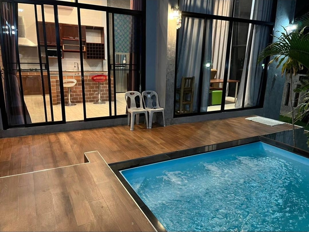 For rent 💦 House with private swimming pool. Emphasis on openness with high ceilings, entering the alley of the womens nursing home, Soi Ruamsuk, near the Honda Center, New House, near Muang Thong Thani. Near Srisamarn Expressway and Rangsit University, fully furnished, ready to move in, for rent 28,000 baht/month One-story house, size 64 sq m - 2 bedrooms - 2 bathrooms - tv - Refrigerator - Gas stove with kitchen counter - Washing machine - Microwave - Furniture in both bedrooms - Swimming pool - Jacuzzi Minimum contract 1 year Move in, pay 1 month in advance 2 months security deposit If interested, contact Khun Ai Call Contact number Line : @527yorgt https://page.line.me/527yorgt