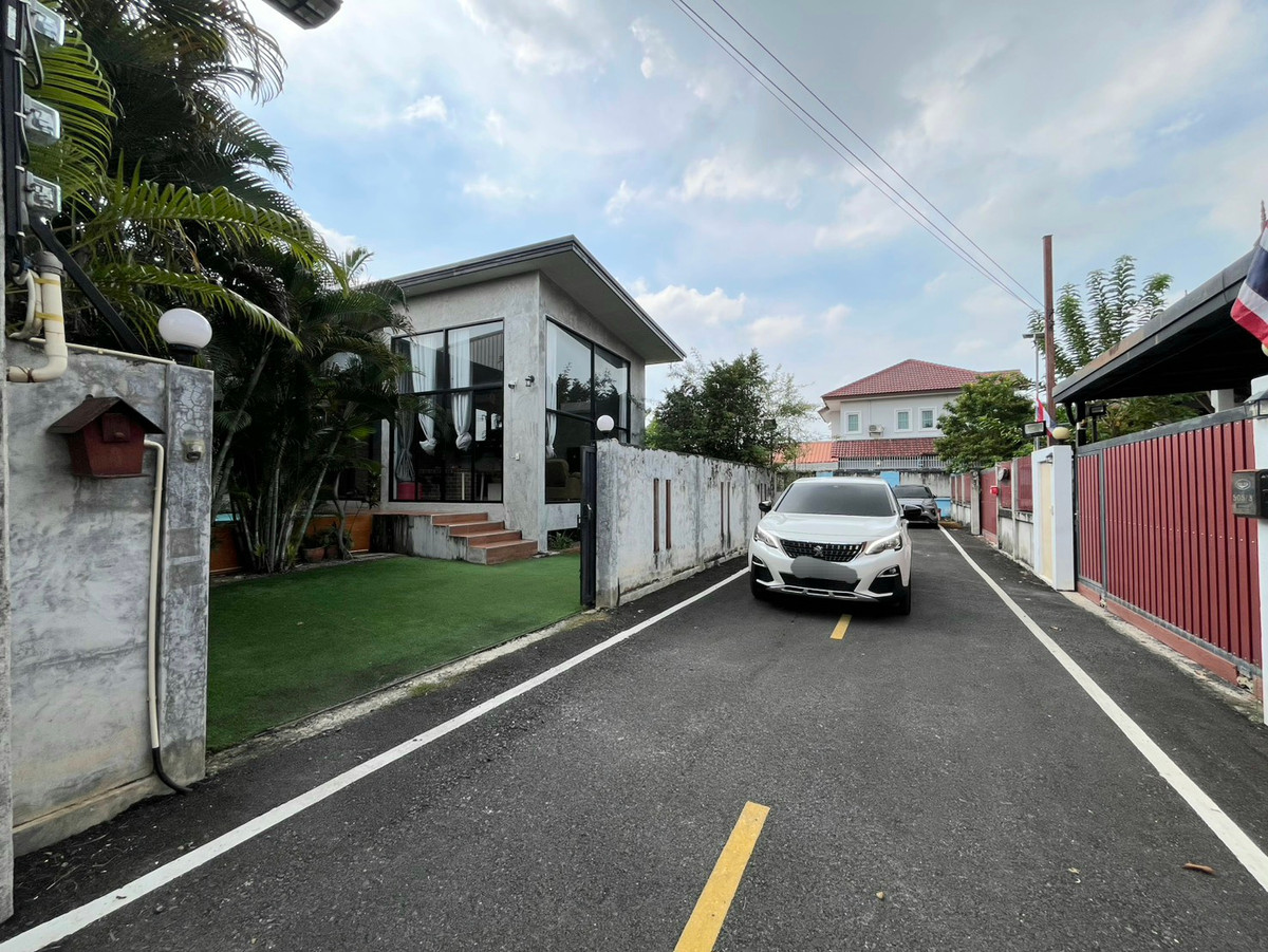 For rent 💦 House with private swimming pool. Emphasis on openness with high ceilings, entering the alley of the womens nursing home, Soi Ruamsuk, near the Honda Center, New House, near Muang Thong Thani. Near Srisamarn Expressway and Rangsit University,