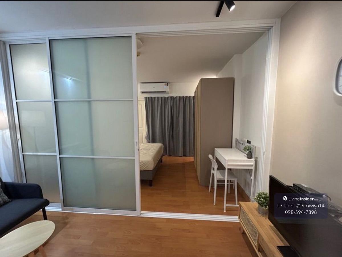 For rent: City Home Sukhumvit (City Home Sukhumvit) Area 29.5 sq m Building A1 4th floor Rental price 10,500 baht per month (2 months deposit, 1 month in advance) 1 year rental contract 1 bedroom, 1 bathroom, kitchen balcony It is a low rise condo, small unit, quiet, warm and private atmosphere. Not crowded -The building is not far from the road. Only 5 minutes walk to Udomsuk BTS station and public bus stop -Room location near elevator and fire escape -Newly decorated room Premium grade furniture All new share functions Perfectly Amenities -Sofa set -TV and shelf Decorated with lamps - Door separating the bedroom from the TV viewing area - Bed, mattress size 5 feet with table and bedside lamp - Air - Wardrobe - Dressing table With lights - Water heater - Refrigerator - Microwave Contact to inquire or make an appointment to see the room. Bom Tel: Contact number (AGENT) ID Line: @pimwiga14 (with @ in front)
