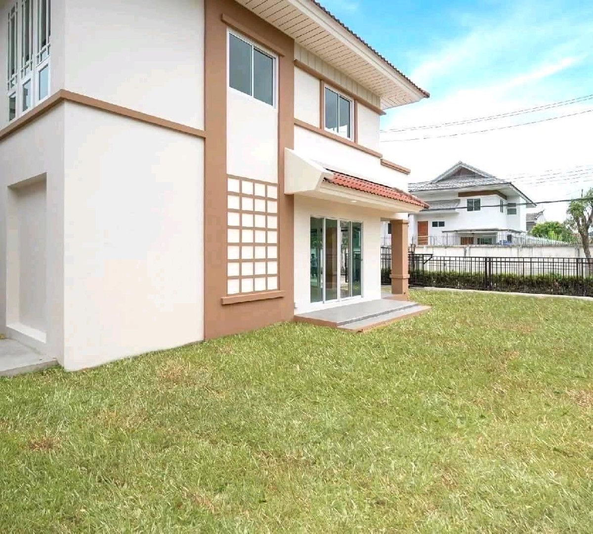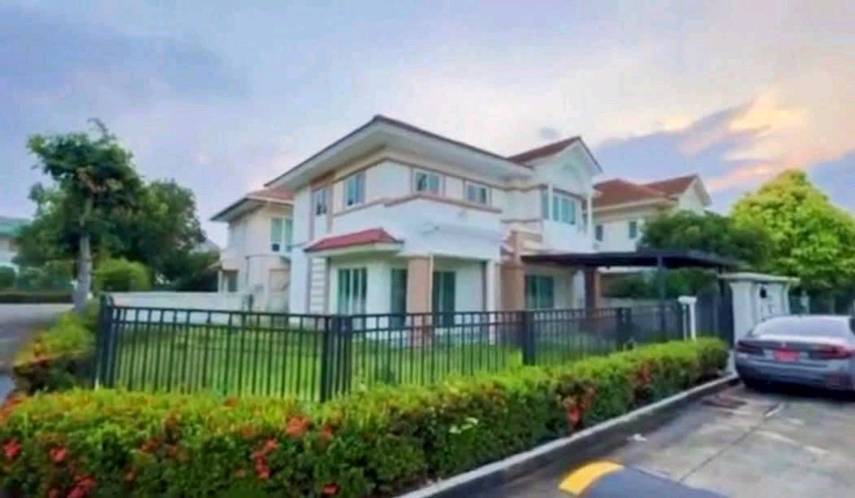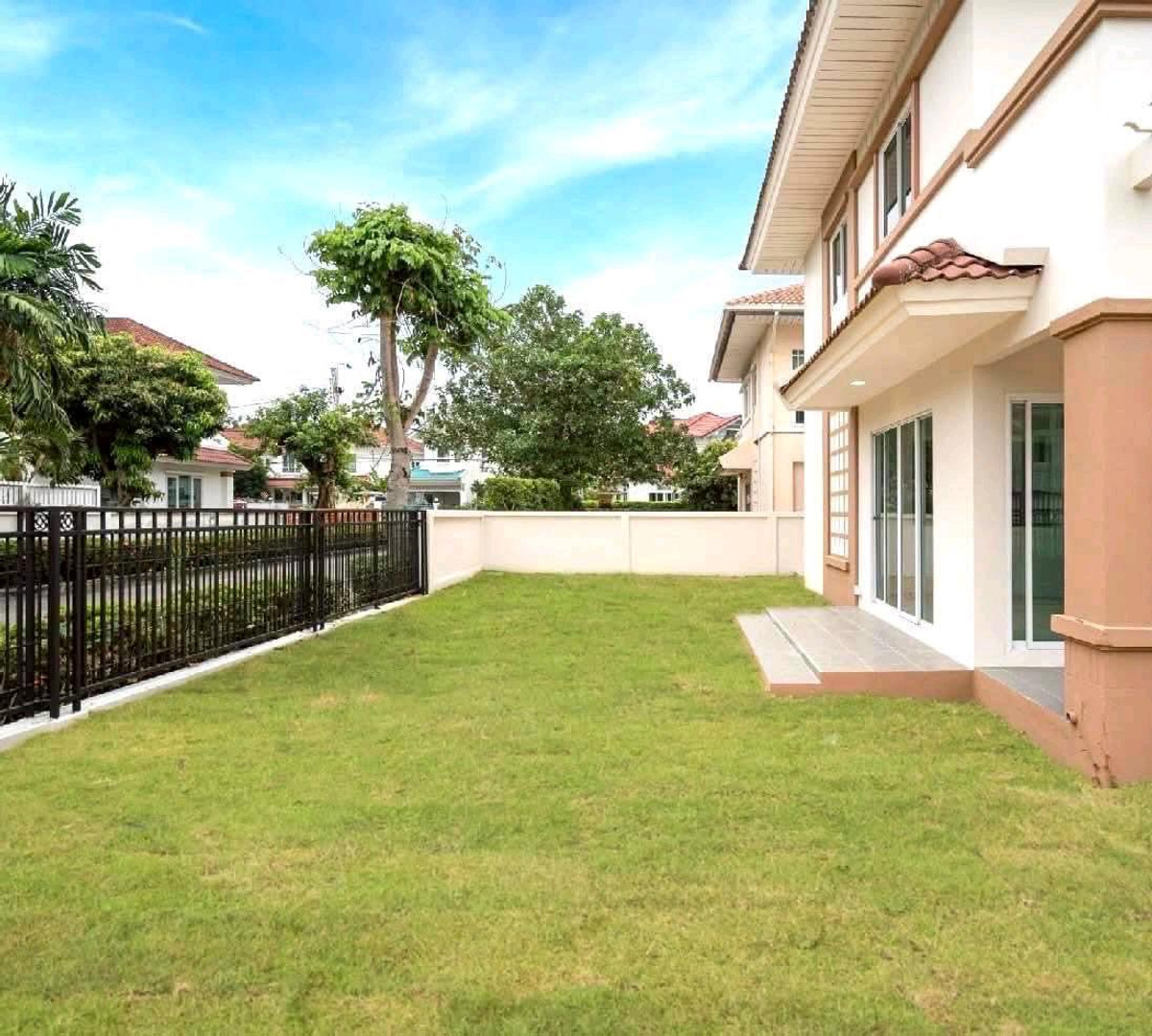 Single house for rent, large house, 74.1 square wah, corner plot, Maneerin Park Village, Rattanathibet, near the BTS, rent only 38,000 baht/month.