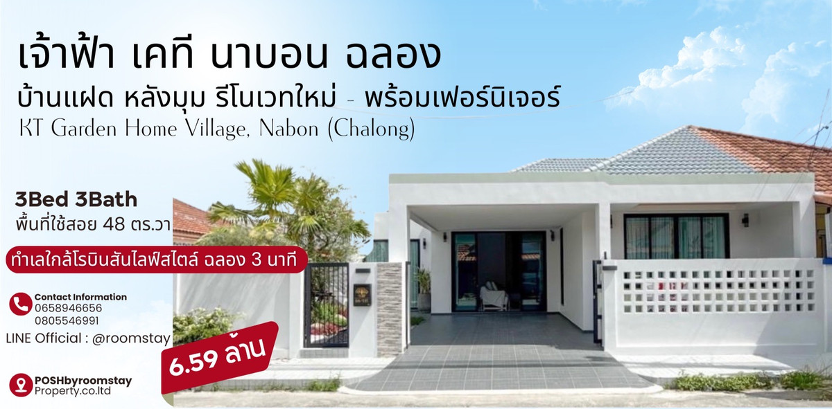 Semi-detached house (corner house), newly renovated, comes with rooftop terrace area - furniture ready to move in , location near Robinson Lifestyle Chalong, only 3 minutes Chao Fah Village, KT Na Bon, Chalong The house is designed to be a space to relax and do a variety of activities. Whether its holding a small party, sitting and chilling, feeling the breeze, or creating a sky garden, its perfect House type: 3 bedrooms, 3 bathrooms Area 48 sq m Proportionally allocated space Comes with furniture in every bedroom * Install curtains throughout the house * Dining table set * 5 air conditioners * Water heater in every room * Television, refrigerator, washing machine* Water tank, water pump Outstanding location Nabon Wichit-Chalong, convenient travel near the main road Near Robinson Lifestyle Chalong, only 3 minutes, surrounded by restaurants, schools, shopping and complete amenities A house that comes with the right functions and location ready to be a space of warmth for you to create good moments every day ┏━━━━━━━━━━━━━━━━━━┓ ฿6,590,000.- ┗━━━━━━━━━━━━━━━━━━┛ Renovated Corner Twin House with Rooftop Terrace – Fully Furnished, Move-In ReadyLocated just 3 minutes from Robinson Lifestyle Chalong. Village: Chao Fah KT, Naban, Chalong House Details: • 3 Bedrooms, 3 Bathrooms • Land area: 48 sq.wah (192 sq.m.) • Well-organized living spaces • Fully furnished bedrooms • Full-house curtains installed • Dining set included • 5 Air conditioners • Water heaters in all bathrooms • TV, Refrigerator, Washing machine • Water tank and pump Prime Location: Situated in Naban, Wichit-Chalong area with easy access to main roads. Only 3 minutes from Robinson Lifestyle Chalong. Surrounded by restaurants, schools, shopping centers, and complete amenities. ⚫️ #Poshbuyroomstaypropertycompany 🕳️ Credit check service • Calculate loan ability • Calculate monthly installment rate 🕳️ We excel in sales and adeptly manage the trading operations for international clientele➖➖➖➖➖➖➖➖➖➖➖➖➖➖➖➖➖ ☎️ More information, Please do not hesitate to contact us Contact number Khun Nan Contact number K.Ping (eng.) Line: @roomstay Ask for information via LINE. Its more convenient. There is an admin to take care of you https://lin.ee/aLaoTiw [ POSHBYROOMSTAYPROPERTY.CO.,LTD ] 📌 See reviews of beautiful houses at https://www.tiktok.com/@poshbyroomstay?_t=8kTog2ffG59&_r=1#Poshby Roomstay Property #Poshbuyroomstaypropertycompany