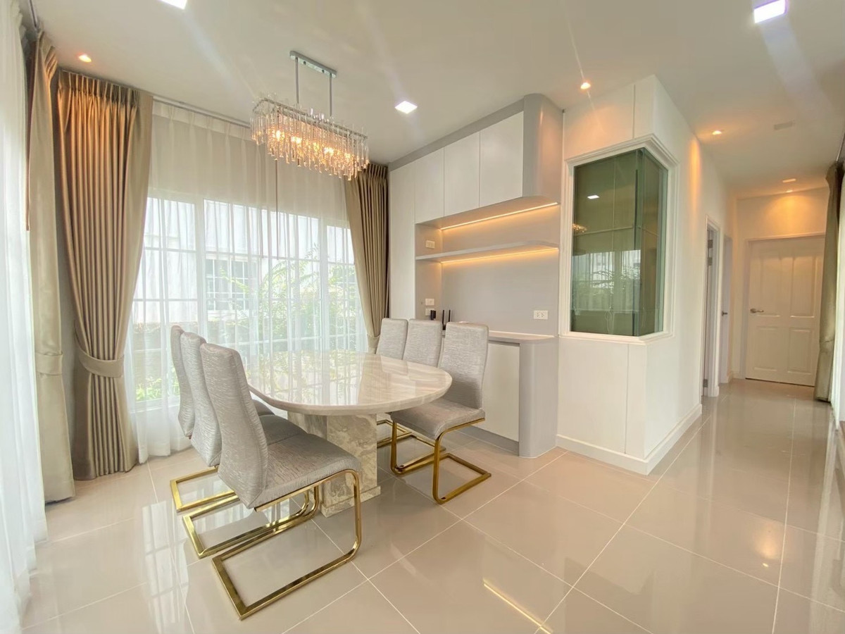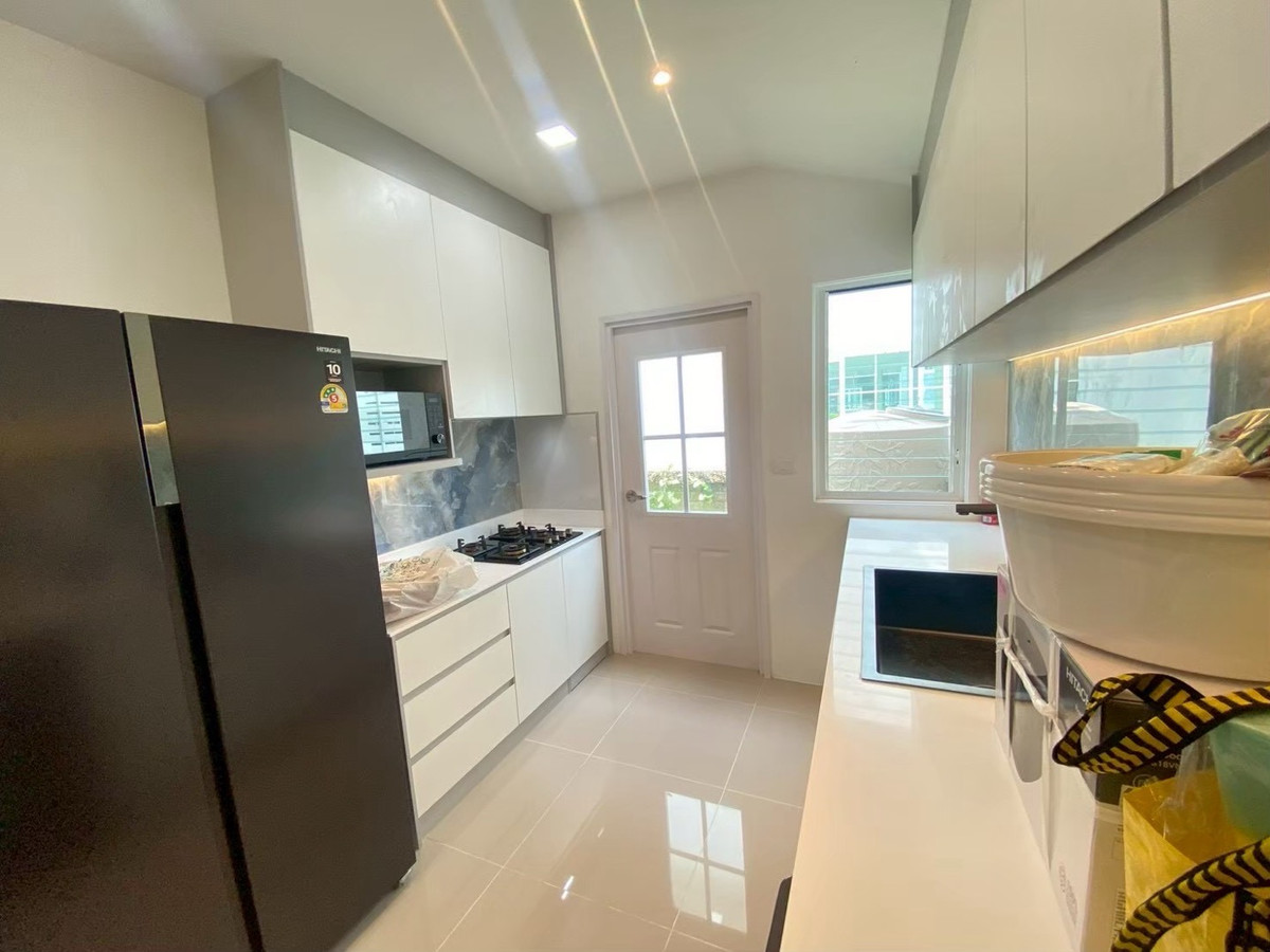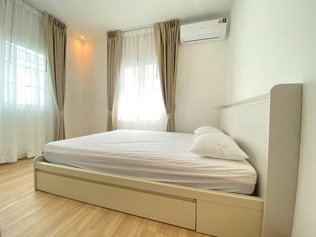 For rent: Golden Neo Village Sukhumvit-La Salle, 4 bedrooms, 3 bathrooms, 2 parking spaces, garden view house, beautifully decorated and ready Rent 70,000 baht/month Usable area 140 sq m, land 35 sq m