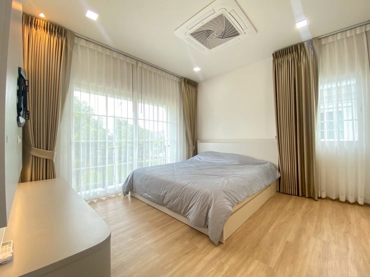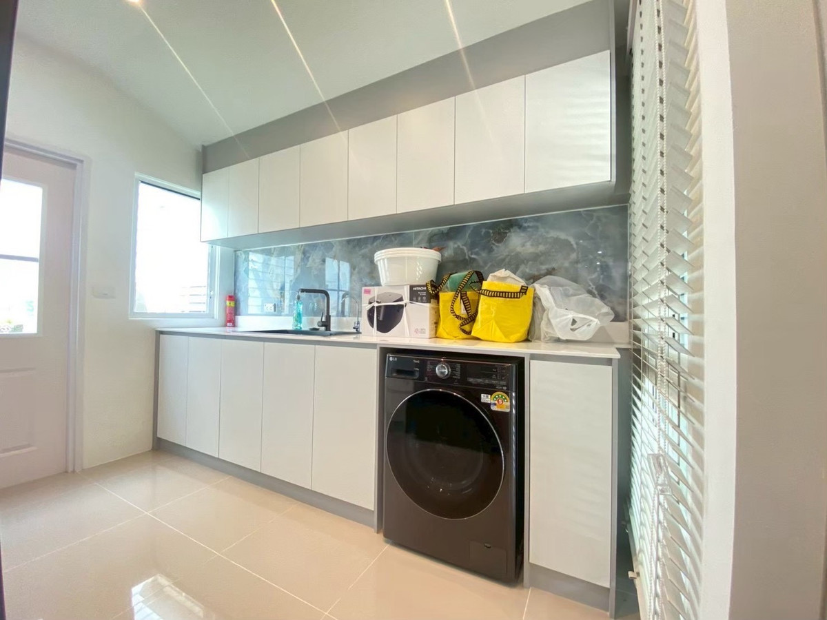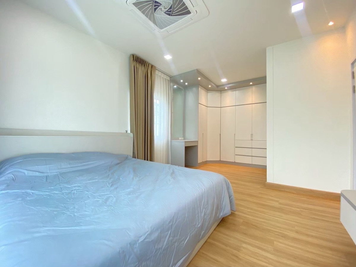 For rent: Golden Neo Village Sukhumvit-La Salle, 4 bedrooms, 3 bathrooms, 2 parking spaces, garden view house, beautifully decorated and ready Rent 70,000 baht/month Usable area 140 sq m, land 35 sq m