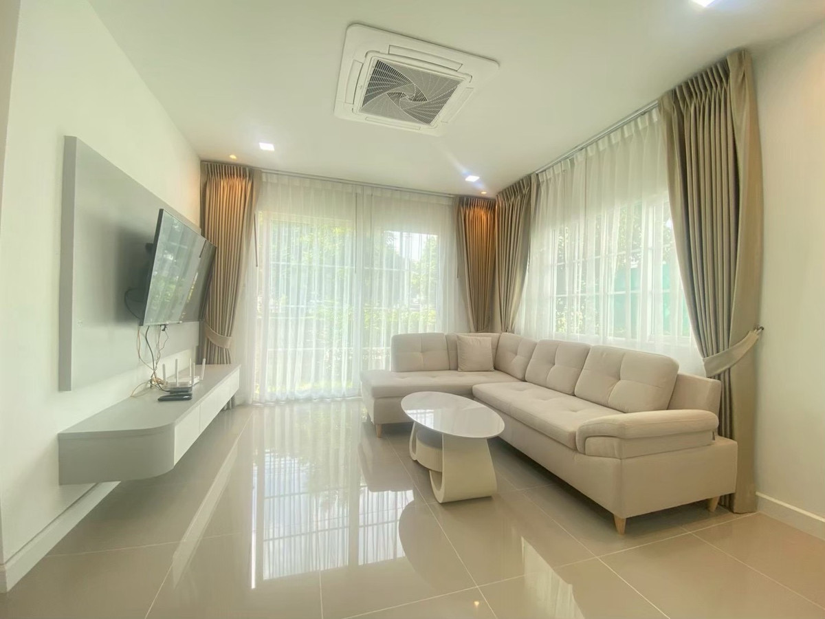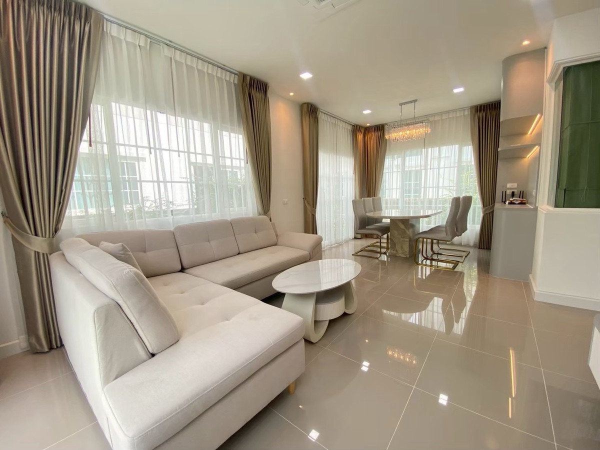 For rent: Golden Neo Village Sukhumvit-La Salle, 4 bedrooms, 3 bathrooms, 2 parking, garden view house, beautifully decorated, ready to move in.
