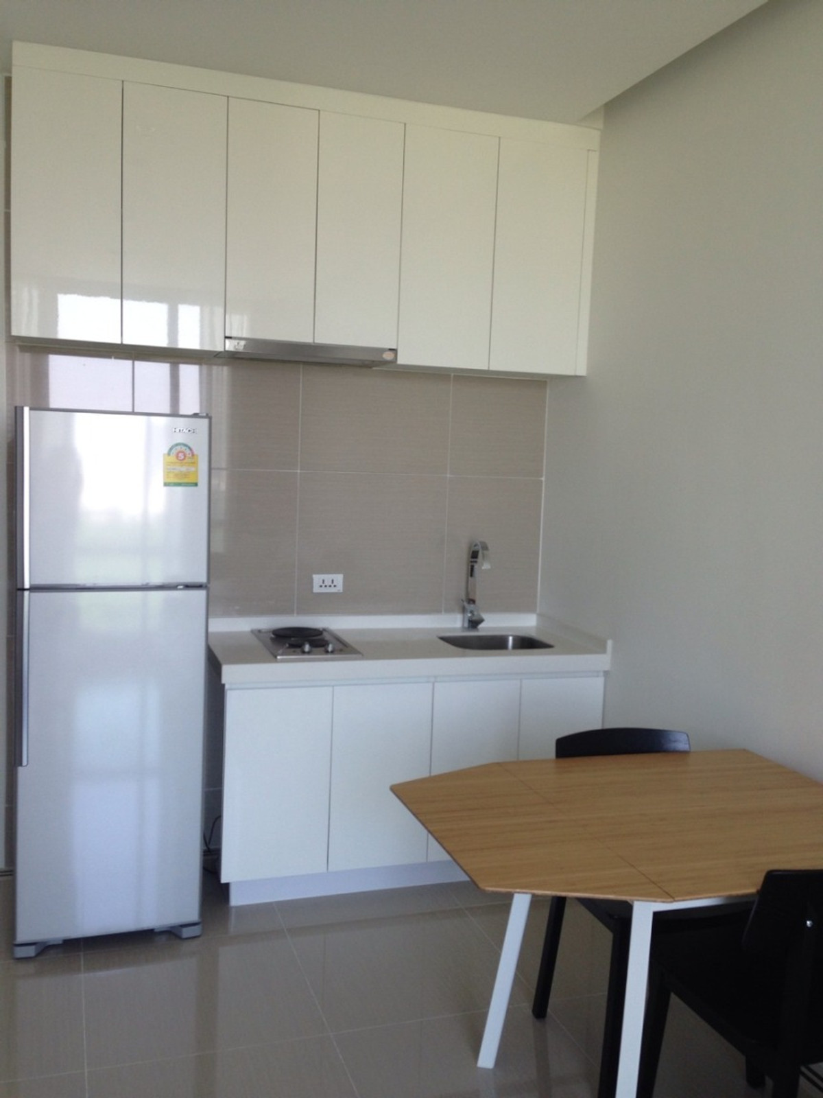 Fully Furnished - Wardrobe - Double layer curtains - 6 foot bed - Table with chair - Refrigerator - 32 inch LCD television - Electric stove with exhaust hood - Washing machine - Bathroom with separate wet and dry sections and water heater - Sofa - Tall, airy room, not uncomfortable 2.7 meters Central garden with - Swimming pool and relaxation garden - fitness room - keycard, door and elevator locks on each floor - 24 hour security guard If interested, contact Khun Ja (the owner rents it himself) Contact number