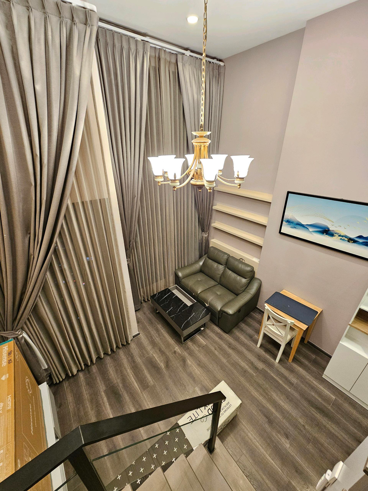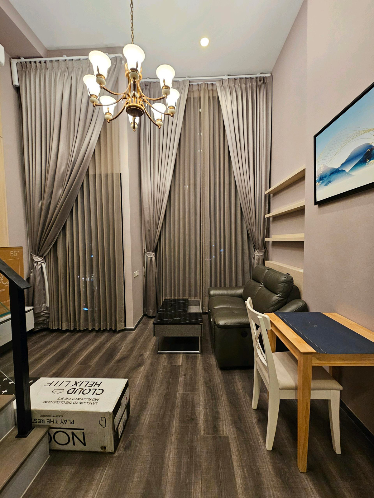 For rent KnightBride Space Ratchayathin 🏢 1 Bedroom Duplex 🏢 Area size 37 square meters 🏢 22nd floor 💥💥💥 22,000 baht💥💥💥 🪑 Decorated with built-in furniture throughout the room 🏊‍♂️ City view 🖥 Complet