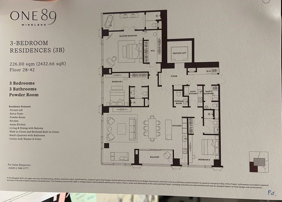 🌟Sell/Rent One89 Wireless at One Bangkok Super Luxury Condo on Wireless Road • 3 Bedrooms | 3 Bathrooms | 1 Powder Room • Usable area 226 sq.m. • High Floor | Private Layout | Premium View 💎 For Rent: