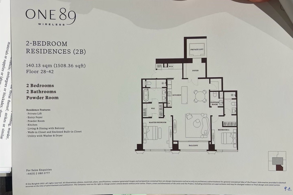 🌟 One89 Wireless at One Bangkok Super Luxury Residence on Wireless Road, Prime location, Flagship level • 2 Bedrooms | 2 Bathrooms | 1 Powder Room • Usable area 141 sq.m. • High Floor | Elegant Layout