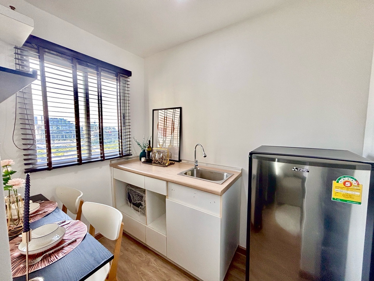 🏢 Condo for sale Lumpini Mega City Bangna, newly renovated, ready to move in, 17th floor, Building D . 📌 Size 26 sq m, Building D, 17th floor 📌 Furniture: new bed-mattress / new sofa / built-in kitchen / new dining table set, new floor 📌Electrical appliances: air conditioner / water heater / refrigerator /microwave/washing machine 📌 near Mega Bangna mall Convenient travel, close to the expressway entrance and exit . 🔥 Price only 1.49 million baht . Free loan application consultation!!