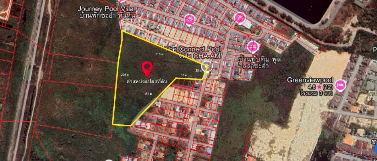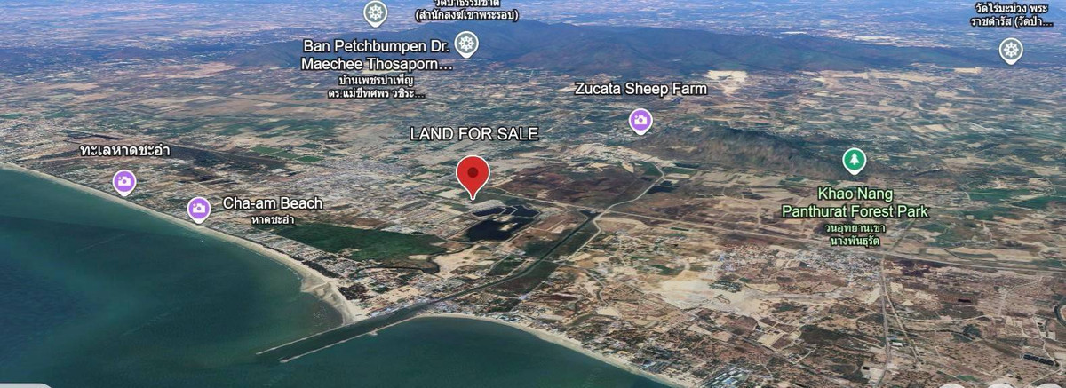 Property code L # 29669 -Empty land for sale below appraised price, mountain view, near Cha-am Beach, area 16-0-95.4 rai, Cha-am District, Phetchaburi Province. -Large plot of land, beautiful view, close to the sea, can enter and exit in many ways. -The front of the land is 35 meters wide next to the road -Facing southeast. -Not yet filled in (needs to be filled in about a meter more) -Concrete road in front of the land, 6 meters wide -Pink city plan, water/electricity access -Land plot has potential. Near Phetkasem Road -suitable for Up the allocation project , Build a resort, hotel, pool villa. -or suitable for other businesses for future investment Important places nearby -near Phetkasem Road 700 meters -near Cha-am Beach 3 kilometers -near public utility sources -Area next to the land surrounded by Baan Pool Villa Various projects such as - The Connect Pool Villa CHA-AM - SU 24 pool villa Cha-Am ** If interested, contact Ms. Kantaporn Contact number ** Line ID: @realtynine , If interested, please make an appointment to view the property 1 day in advance** ***Accepting sales, rentals, houses, land, condos and all types of real estate. Bangkok and surrounding areas*** *** Do marketing for free. Until it can be sold By a professional team Very experienced, 32 years ***