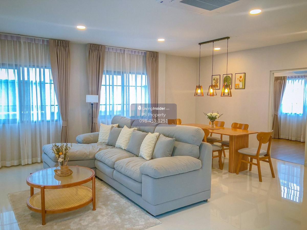 Price: 115,000 baht / month Usable area: 235 sq.m. Area: 57 sq.w. Floor: 2 4 bedrooms / 4 bathrooms / 1 living room / 3 parking spaces Amenities: CCTV, key card Access, fitness center, swimming pool, 24/7 security guard, co-working area, common area. Furniture included: TV, microwave, sofa, refrigerator, bed, air conditioner, water heater, Smoke Dispenser, shelf, TV cabinet, wardrobe, center table. House for rent! convenient transportation, near BTS, near the expressway, fully furnished Ready for viewing. Interested please contact: 📞Call center: Contact number 📱Hotline: Contact number 📲Whatsapp: Contact number 🖱️Line: @psproperty https://lin.ee/d8bpOBs Website: https://www.ps-property.co.th/