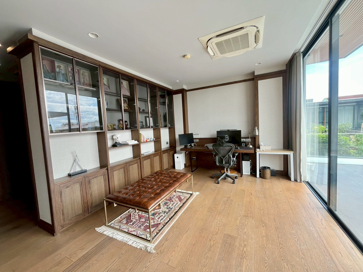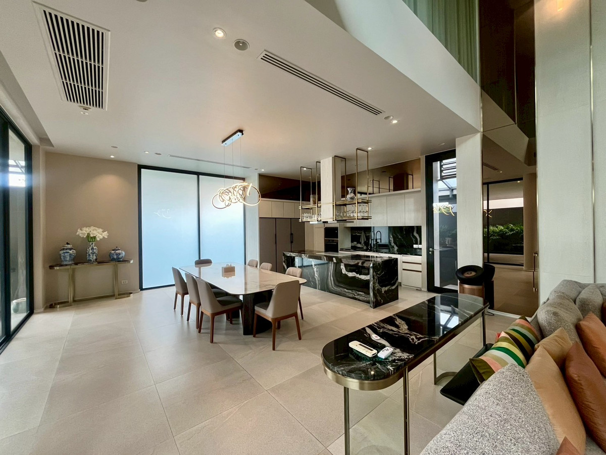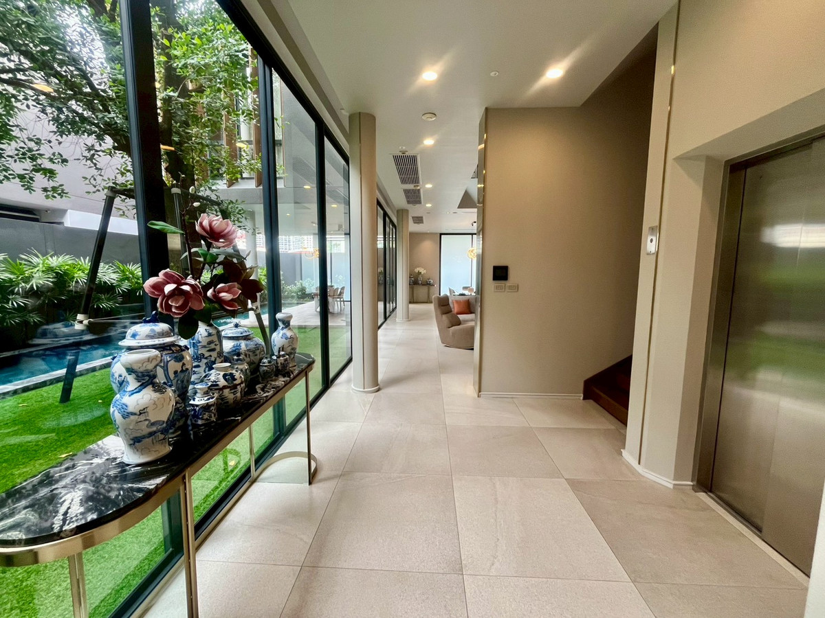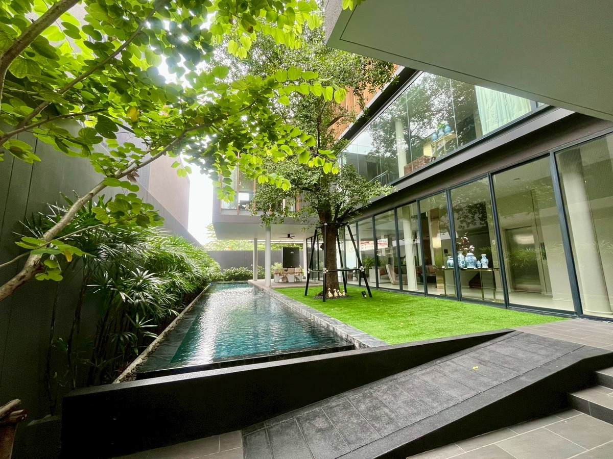 🏡House details 💰Sale price: 180,000,000 baht 📐Land price 370,000 baht per sq m Type of house: ASHER (TYPE A) 3-story detached house Land size: 130.4 sq m. Usable area: 842 sq m 🛏 6 bedrooms 🛁6 bathrooms 1 maid room + 1 maid bathroom 🚗Parking for 5 cars in the house, 1 Thai kitchen, 1 Western kitchen and Pantry Zone on the 2nd and 3rd floors 🛗House with elevator and large terrace 🏊‍♂️House with private salt-water swimming pool, Double Volume Living Area (high ceiling living room), separate maids room, Thai kitchen, premium materials. 💎Privacy: Exclusive community of only 20 houses Full facilities: luxury clubhouse, 25 meter salt system swimming pool with Jacuzzi, fitness center with Techno Gym equipment, steam room, Private Linear Garden Maximum security: 24-hour security system, CCTV, Access Control system, electric fence around the project. and underground electrical systems 📍Location and nearby important places Located on Rama 9 Road, Soi 13 near the business area Rama 9 - Asoke - Thonglor - Ekkamai 10 minutes to Si Rat Expressway - Rama 910 minutes to MRT Cultural Center near The Nine Rama 9, RCA, and Central Rama 9 Near Golden Place and Makro Mengjai, near Rama 9 Hospital and Bangkok Hospital Near Regents International School, Traill International School, and Central International School (CIS) Overall project information ✨ 🏡ISSARA RESIDENCE Rama 9 is a 3-storey detached house project worth a hundred million (Super Luxury) from Chan Issara, designed by Architects 49 Company Limited or A49. The project will emphasize privacy with only 20 units and the design of the house is a house surrounding a court with privacy. Along with having a complete common area for use 📌If interested, please contact for more information at Tel/Line/Whatsapp: Contact number (Poy 会中文) 语言溝通: 泰文,英文,中文