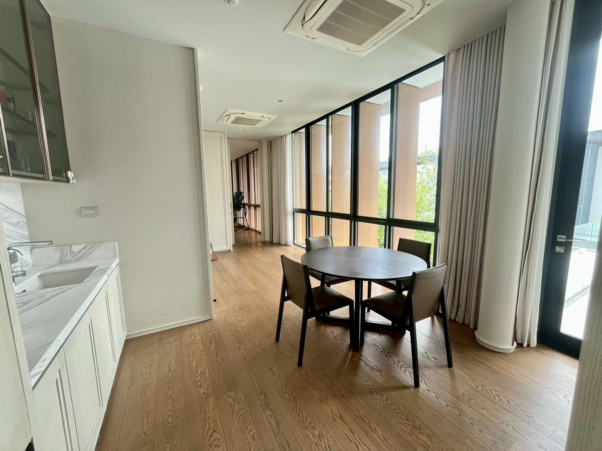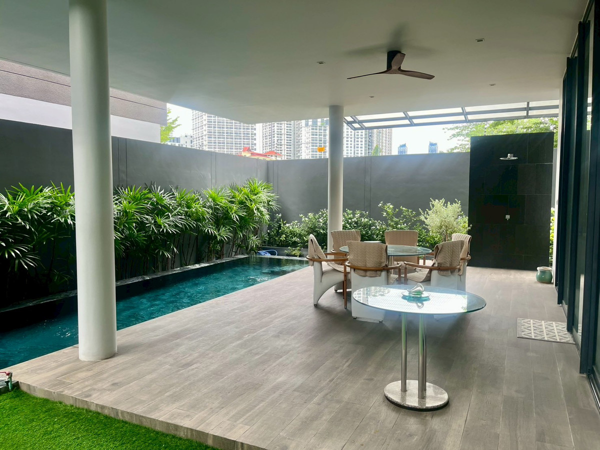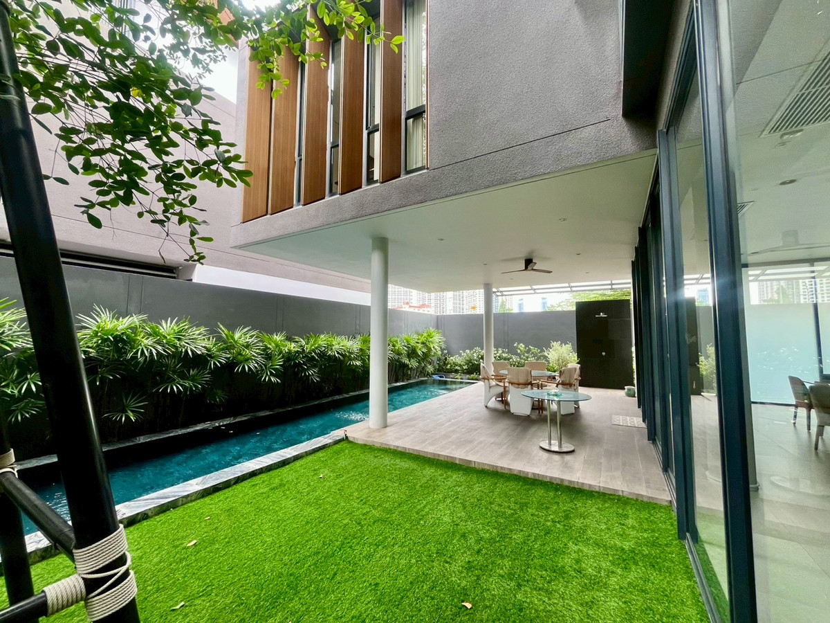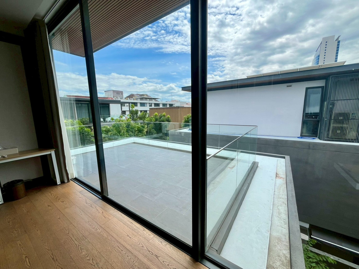 🏡House details 💰Sale price: 180,000,000 baht 📐Land price 370,000 baht per sq m Type of house: ASHER (TYPE A) 3-story detached house Land size: 130.4 sq m. Usable area: 842 sq m 🛏 6 bedrooms 🛁6 bathrooms 1 maid room + 1 maid bathroom 🚗Parking for 5 cars in the house, 1 Thai kitchen, 1 Western kitchen and Pantry Zone on the 2nd and 3rd floors 🛗House with elevator and large terrace 🏊‍♂️House with private salt-water swimming pool, Double Volume Living Area (high ceiling living room), separate maids room, Thai kitchen, premium materials. 💎Privacy: Exclusive community of only 20 houses Full facilities: luxury clubhouse, 25 meter salt system swimming pool with Jacuzzi, fitness center with Techno Gym equipment, steam room, Private Linear Garden Maximum security: 24-hour security system, CCTV, Access Control system, electric fence around the project. and underground electrical systems 📍Location and nearby important places Located on Rama 9 Road, Soi 13 near the business area Rama 9 - Asoke - Thonglor - Ekkamai 10 minutes to Si Rat Expressway - Rama 910 minutes to MRT Cultural Center near The Nine Rama 9, RCA, and Central Rama 9 Near Golden Place and Makro Mengjai, near Rama 9 Hospital and Bangkok Hospital Near Regents International School, Traill International School, and Central International School (CIS) Overall project information ✨ 🏡ISSARA RESIDENCE Rama 9 is a 3-storey detached house project worth a hundred million (Super Luxury) from Chan Issara, designed by Architects 49 Company Limited or A49. The project will emphasize privacy with only 20 units and the design of the house is a house surrounding a court with privacy. Along with having a complete common area for use 📌If interested, please contact for more information at Tel/Line/Whatsapp: Contact number (Poy 会中文) 语言溝通: 泰文,英文,中文
