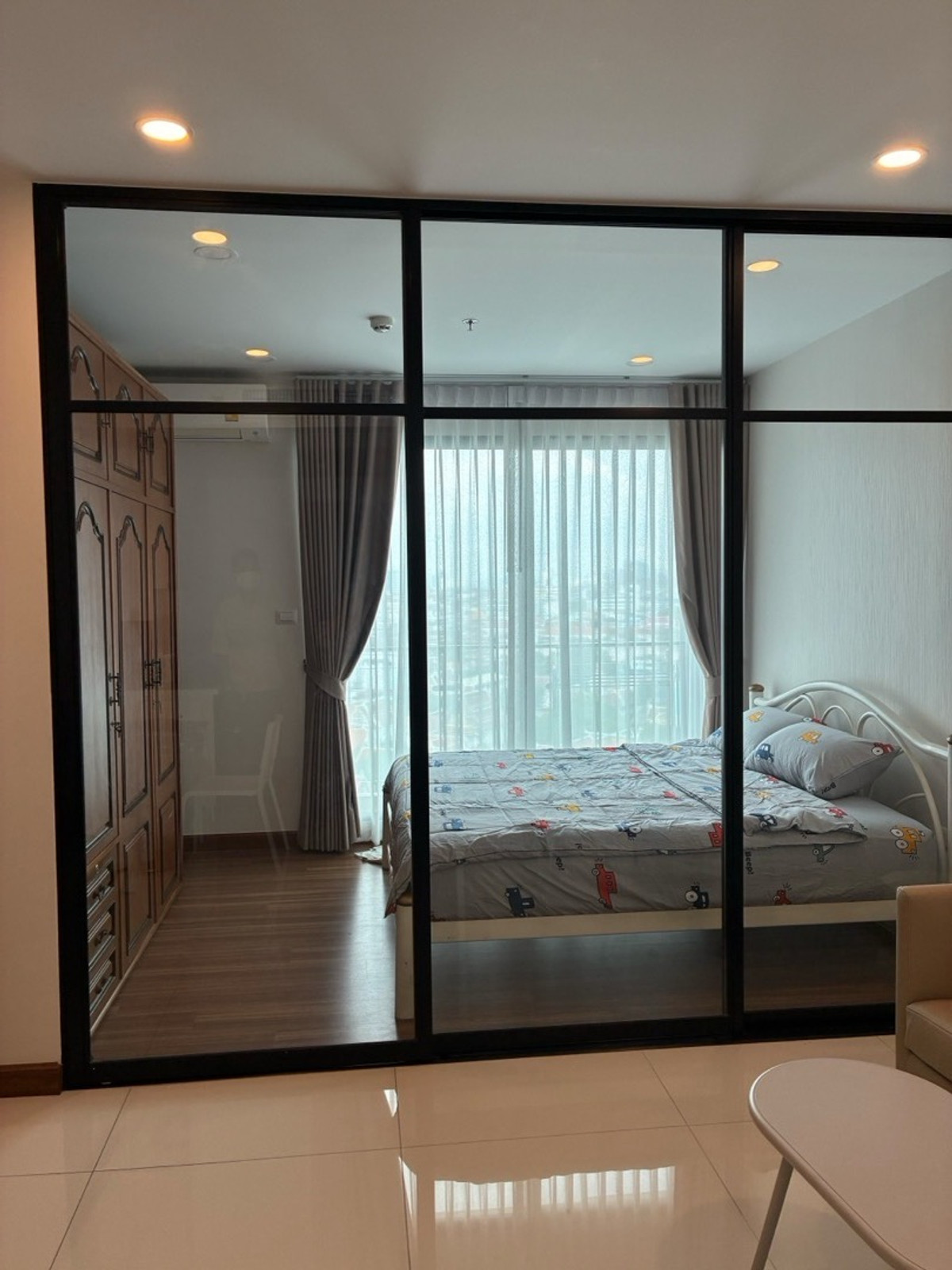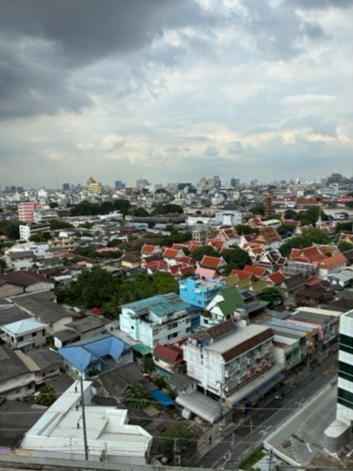 Condo for rent next to the Golden Line MRT station, near Icon Siam, room view sees the Chao Phraya River. The balcony faces north.