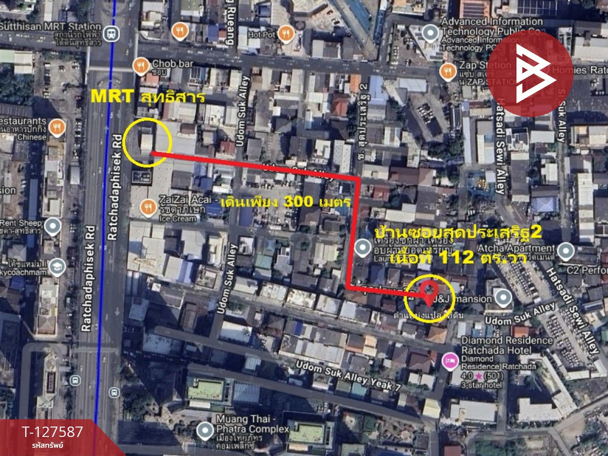 Single house : Huai Khwang, Bangkok Location : Soi Sudprasert 2, Sutthisan Road, Huai Khwang Subdistrict, Huai Khwang District, Bangkok Property code : T-127587 Type : Single house Height : 2 floors Area : 1 ngan 12.0 square wah Width : 32.65 meters Depth: 18.53 meters Bedrooms: 5 rooms Bathrooms: 3 rooms Other rooms: Buddha room, office room Parking: 5 cars Direction: North Additional details: Good location in the heart of the city. Ratchadaphisek Road zone Near the Ratchada-Sutthisan intersection , convenient travel. Walk only 300 meters from the house to MRT Sutthisan subway station, near Muang Thai-Phatra Market. and the Muang Thai-Phatra Complex office building Houses sold as is. Suitable for purchase and renovation into a residence. Or make an office for business contacts. make an apartment Make accommodation for rent Small hotel in the city Price: 18,500,000 baht Map link: https://maps.google.com/?q=13.78785283,100.57656474 **We have a free loan arrangement service. Ready to give advice Available from every bank** **with special interest rates and a maximum credit limit of 90-100% of the appraised value** If interested, ask for more information or make an appointment to see the house at Tel : Contact number Kae (agent code 4547) Line ID : winneykae Tel : Contact number Pu (agent code 4547-1) Line ID : Contact number Callcenter : Contact number Interested in viewing more than 3,000 additional properties www.tb.co.th The Best Property Agent CO,.LTD., leader in the brokerage business. Full service real estate agent With professionalism, use of technology and creative innovation. To deliver the best service for you Providing services in buying, selling, and renting real estate.