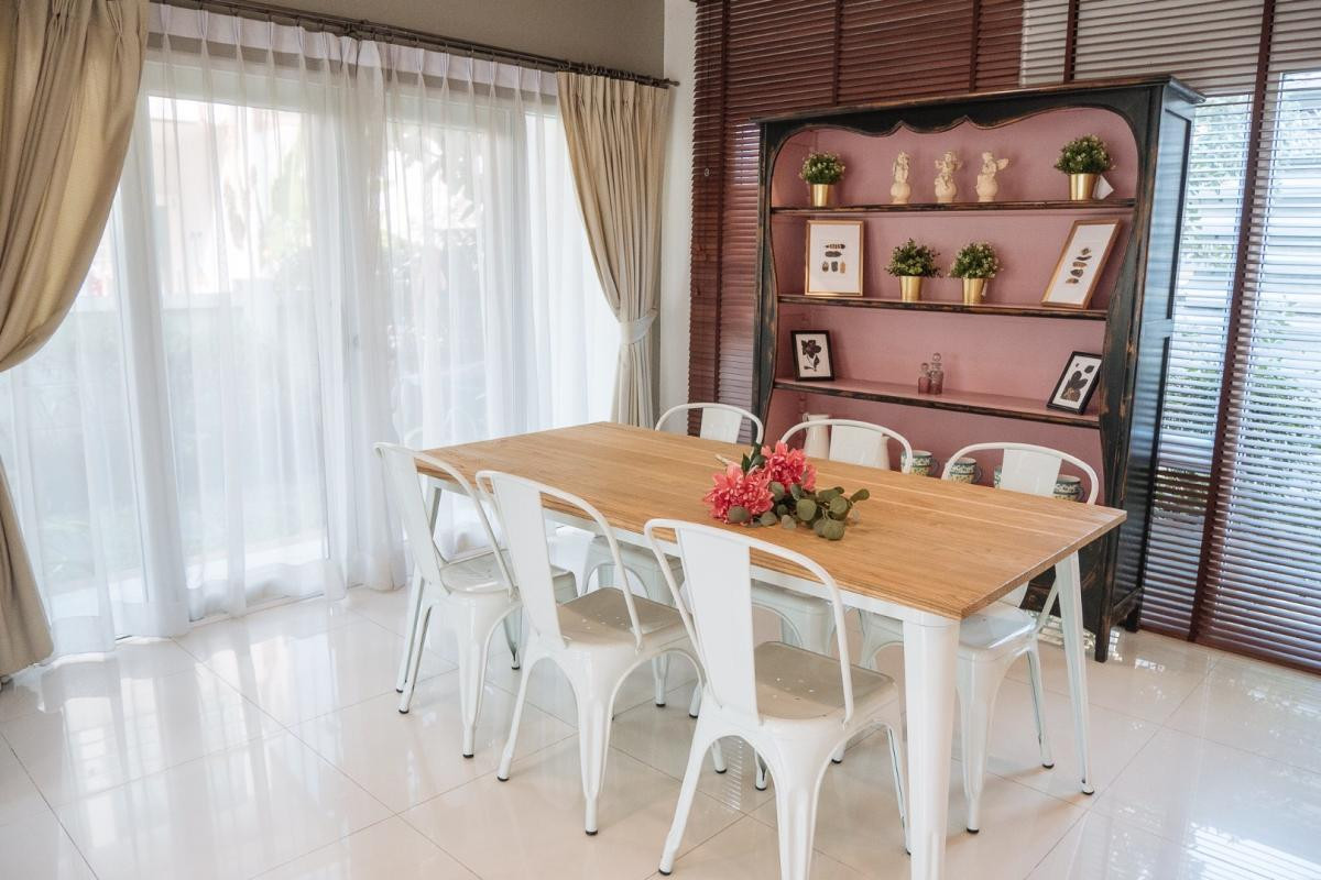 Kaset-Nawamin Road, Chorakhe Bua Subdistrict, Bang Khen District, Bangkok Prime location near the city, surrounded by a full range of amenities Sale price: 11,500,000 baht Thai name Transfer fees and taxes split 50/50 2-story house 3 bedrooms 4 bathrooms 1 maid's room with ensuite bathroom Kitchen Spacious living room Parking Garden surrounding the house Fully furnished and ready to move in Project amenities: Fitness center Swimming pool Security system Playground Nearby places: Kasetsart University Sripatum University Lertlah International School Central Ladprao The Crystal CDC Nawamin City Avenue Festival Walk